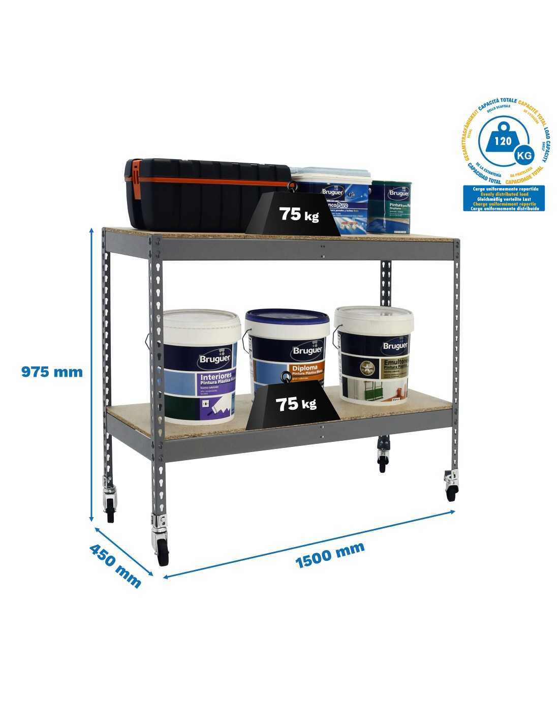 La Estantería SIMONRACK Ecoforte con Ruedas 1504-2 chipboard 900 gris/Madera es una estantería metálica de la gama ECOFORTE de SimonRack, diseñada para quienes buscan una solución funcional, económica y fácil de montar. Ideal para uso doméstico o semiprofesional, soporta hasta 300 kg por balda sin necesidad de tornillos ni herramientas especiales.