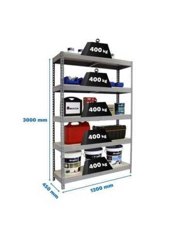 Las baldas metálicas tipo "rex" o de madera soportan hasta 300 kg distribuidos de forma uniforme, lo que la convierte en una solución ideal para almacenar cajas, herramientas, equipos ligeros o productos del hogar.