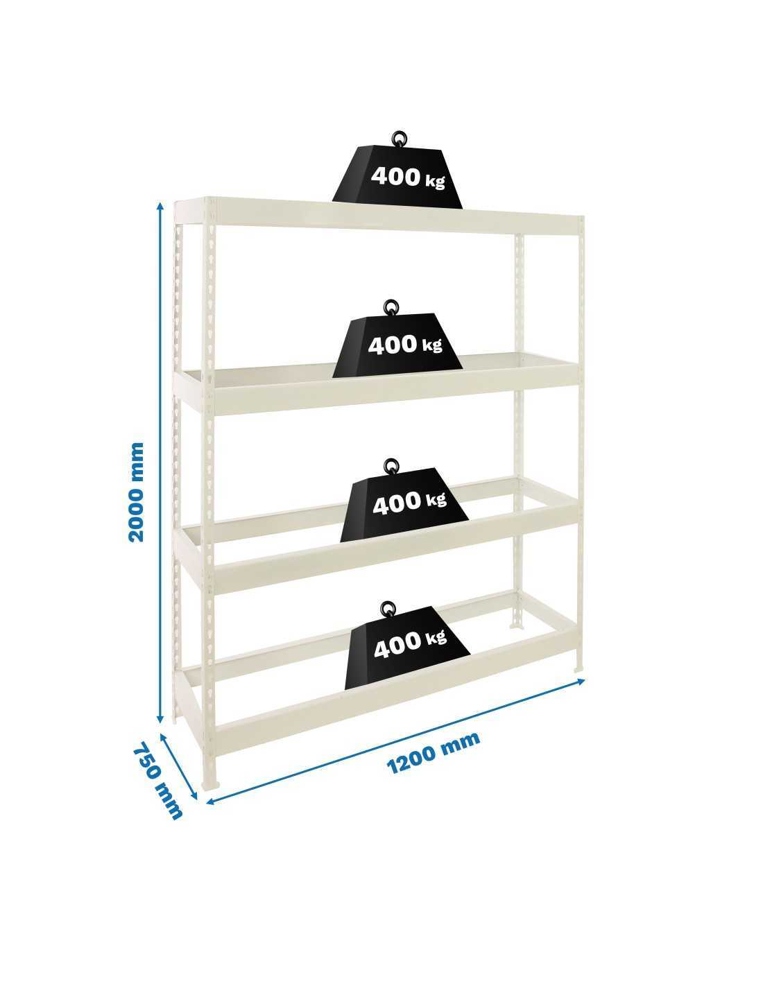 Las baldas metálicas tipo "rex" o de madera soportan hasta 300 kg distribuidos de forma uniforme, lo que la convierte en una solución ideal para almacenar cajas, herramientas, equipos ligeros o productos del hogar.