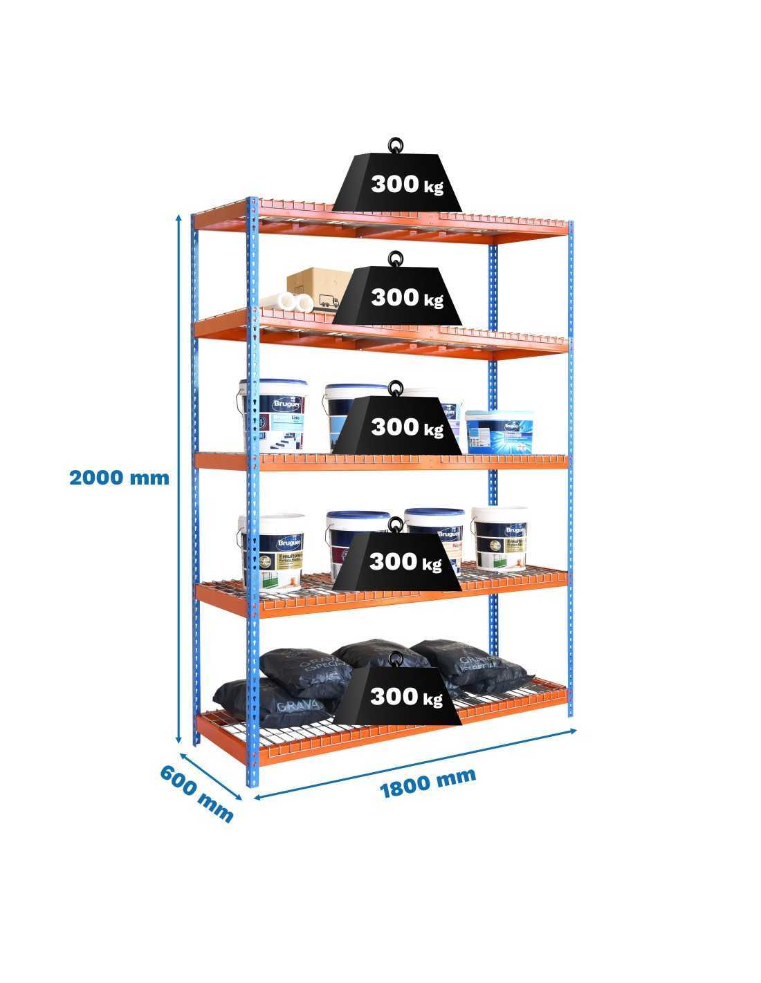 Las baldas metálicas tipo "rex" o de madera soportan hasta 300 kg distribuidos de forma uniforme, lo que la convierte en una solución ideal para almacenar cajas, herramientas, equipos ligeros o productos del hogar.
