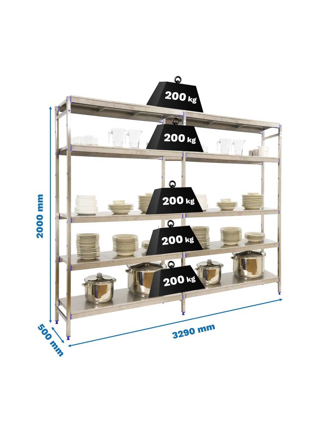 Descripción técnica de la Estantería SIMONRACK Simoninox initial 5ss/2000x3290x500