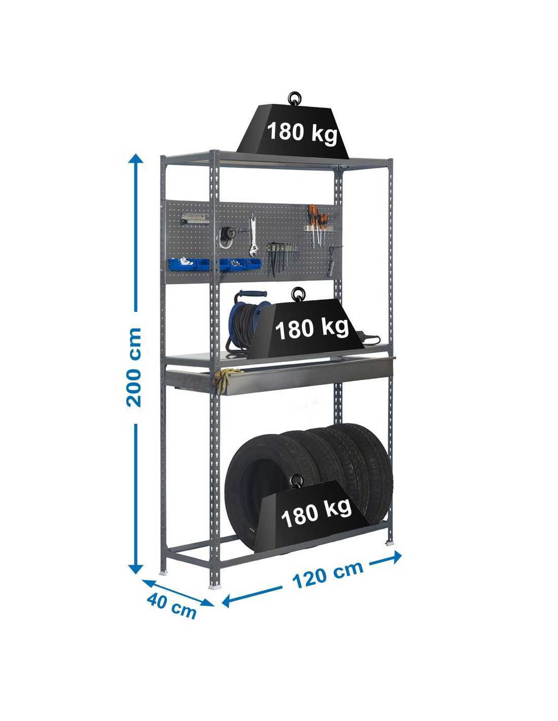 Especialmente pensada para talleres mecánicos, boxes de competición, garajes o espacios de automoción, esta estantería ofrece todo lo necesario para organizar herramientas, piezas, productos y accesorios en un solo módulo de alto rendimiento.