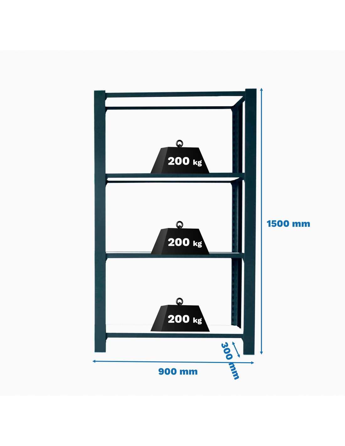 Estantería metálica sin tornillos con bandeja metálica, de color antracita/blanco. M¢dulo inicial. Tiene 4 estantes. Las dimensiones de esta estantería son: 1500x900x300 mm. Y tiene una capacidad de carga de 200 kgs por estante. Es fabricado en España y se monta rápido siguiendo las instrucciones.