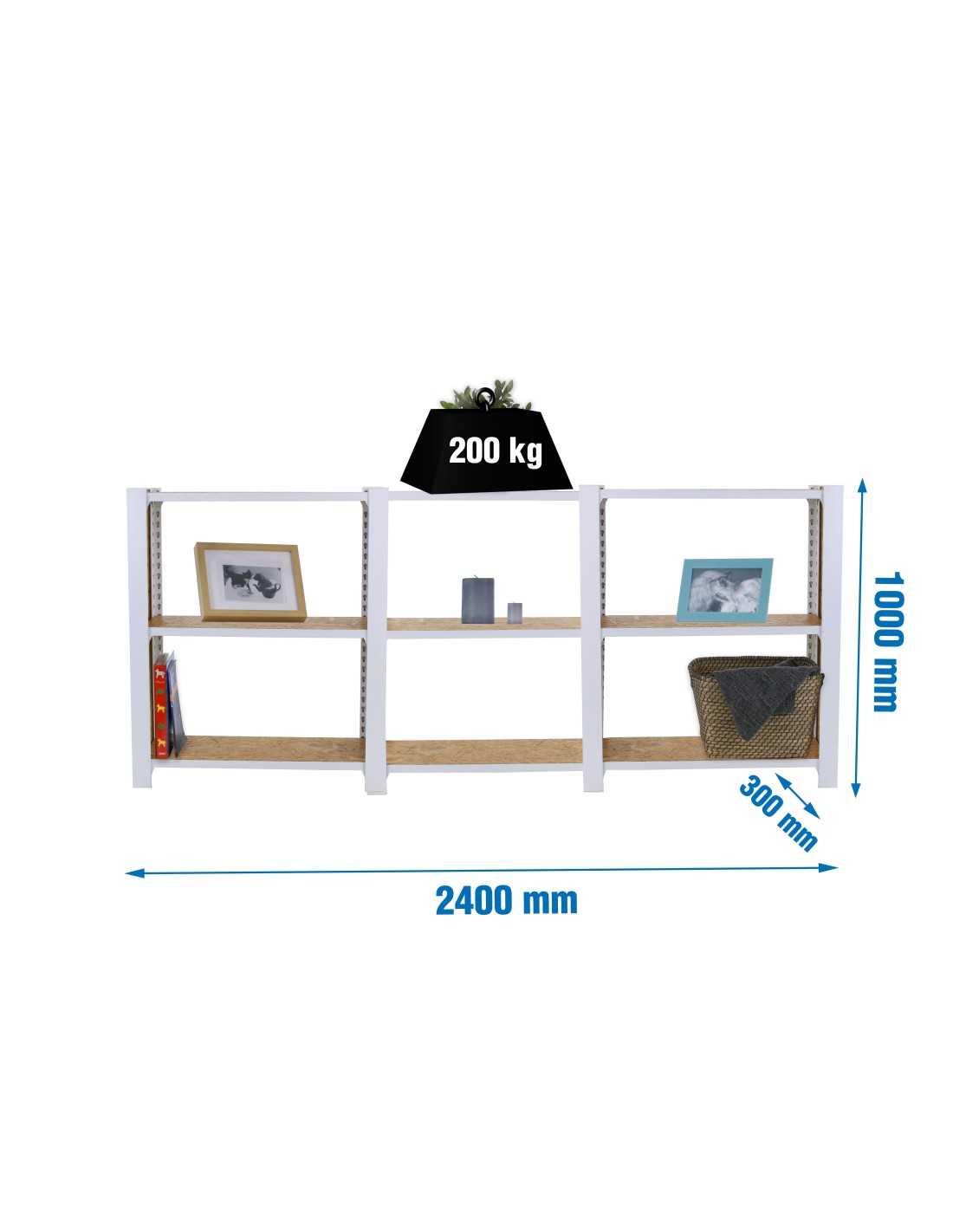 Descripción técnica de la Estantería SIMONRACK Officlick 3/300 wood 2400 blanco/osb + tapas 1000