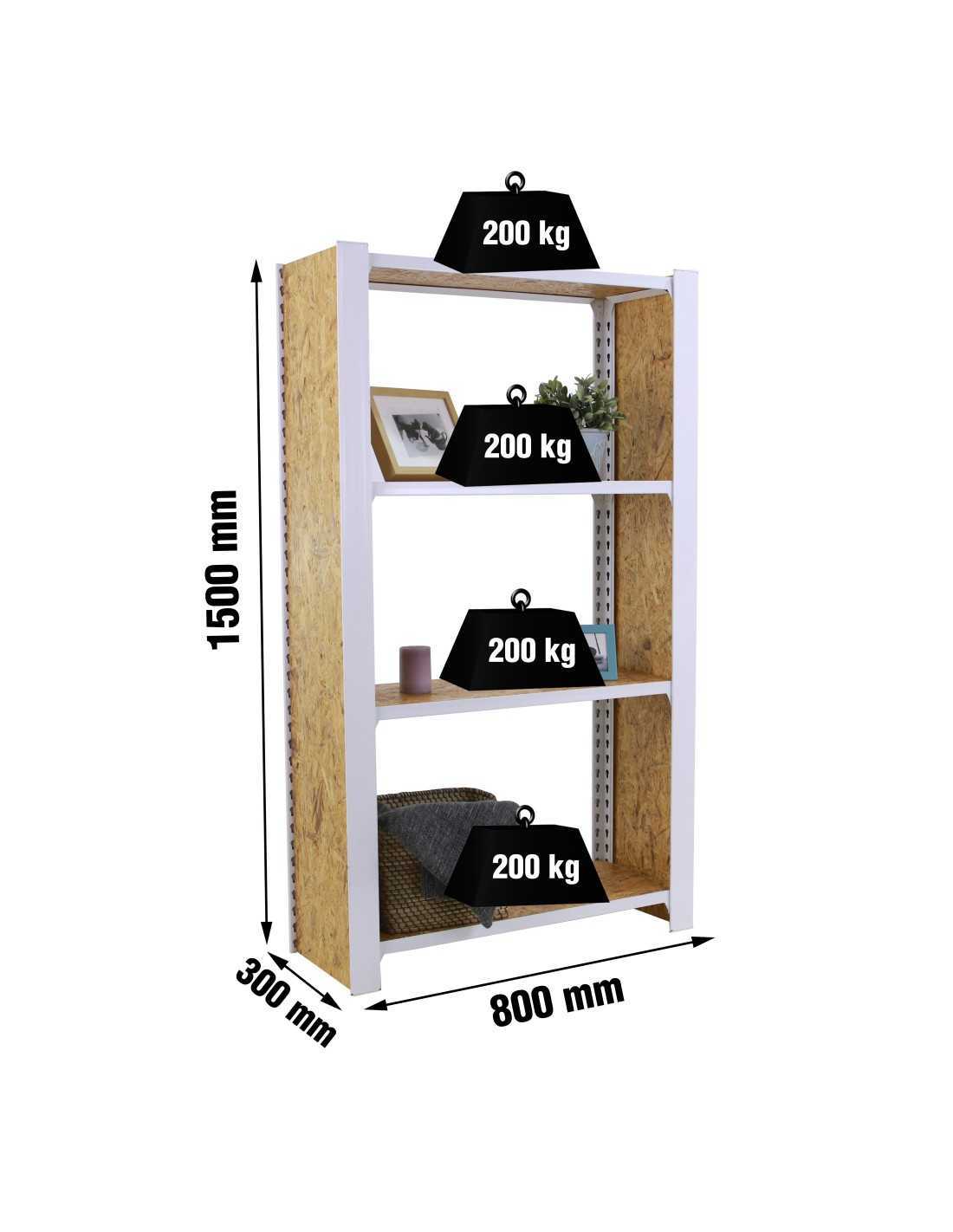 Descripción técnica de la Estantería SIMONRACK Officlick 4/300 wood 800 blanco/osb + tapas 1500