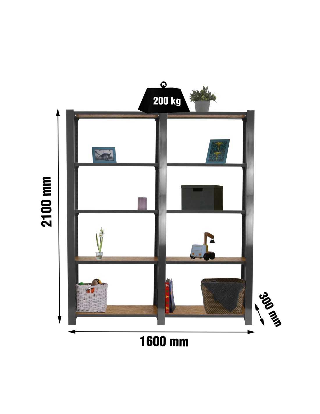 La estantería Estantería SIMONRACK Officlick 5/300 wood 1600 gris/osb + tapas 2100 forma parte de la línea SIMONCLASSICS de SimonRack, especializada en estructuras metálicas resistentes con sistema de montaje mediante tornillos. Este modelo ofrece un equilibrio ideal entre capacidad de carga, facilidad de montaje y adaptabilidad.