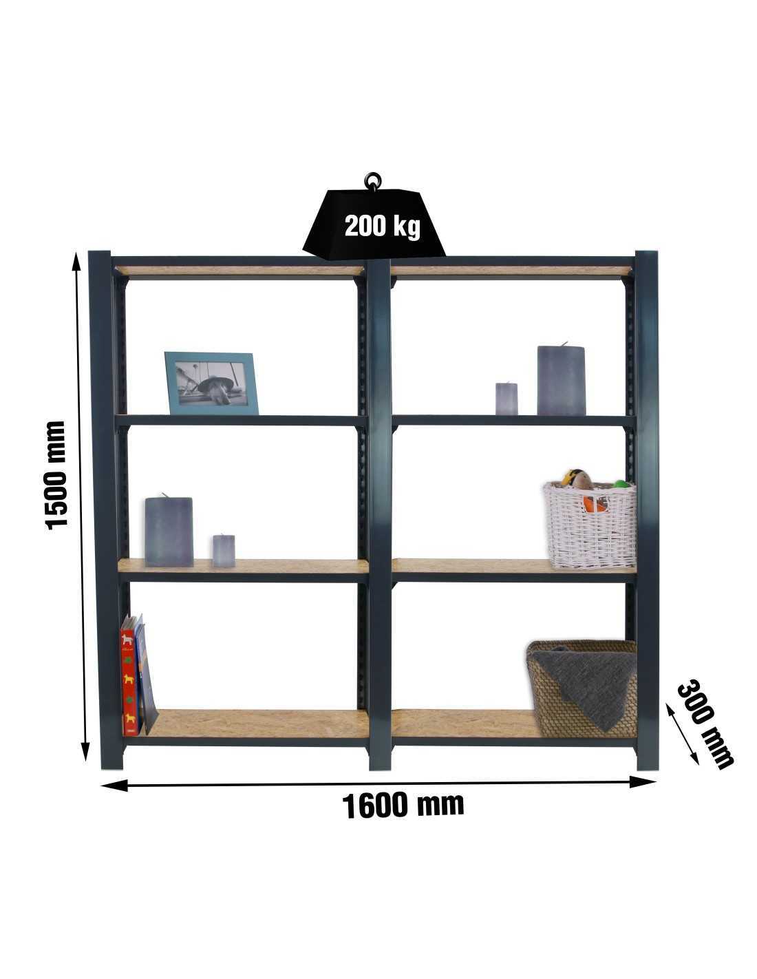 Descripción técnica de la Estantería SIMONRACK Officlick 4/300 wood 1600 antracita/osb