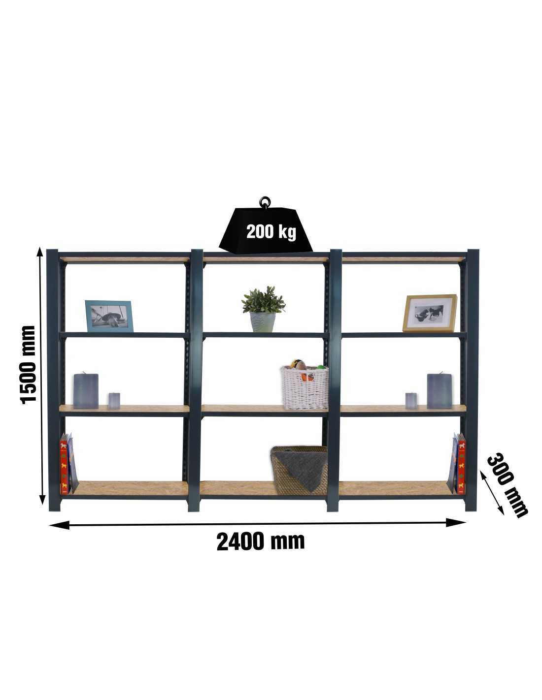 Gracias a su diseño modular, puedes combinar varias unidades de Estantería SIMONRACK Officlick 4/300 wood 2400 antracita/osb para crear una zona de almacenaje continua y adaptable a cualquier espacio. Es ideal para su instalación en almacenes, garajes, talleres, trasteros o pequeños comercios.