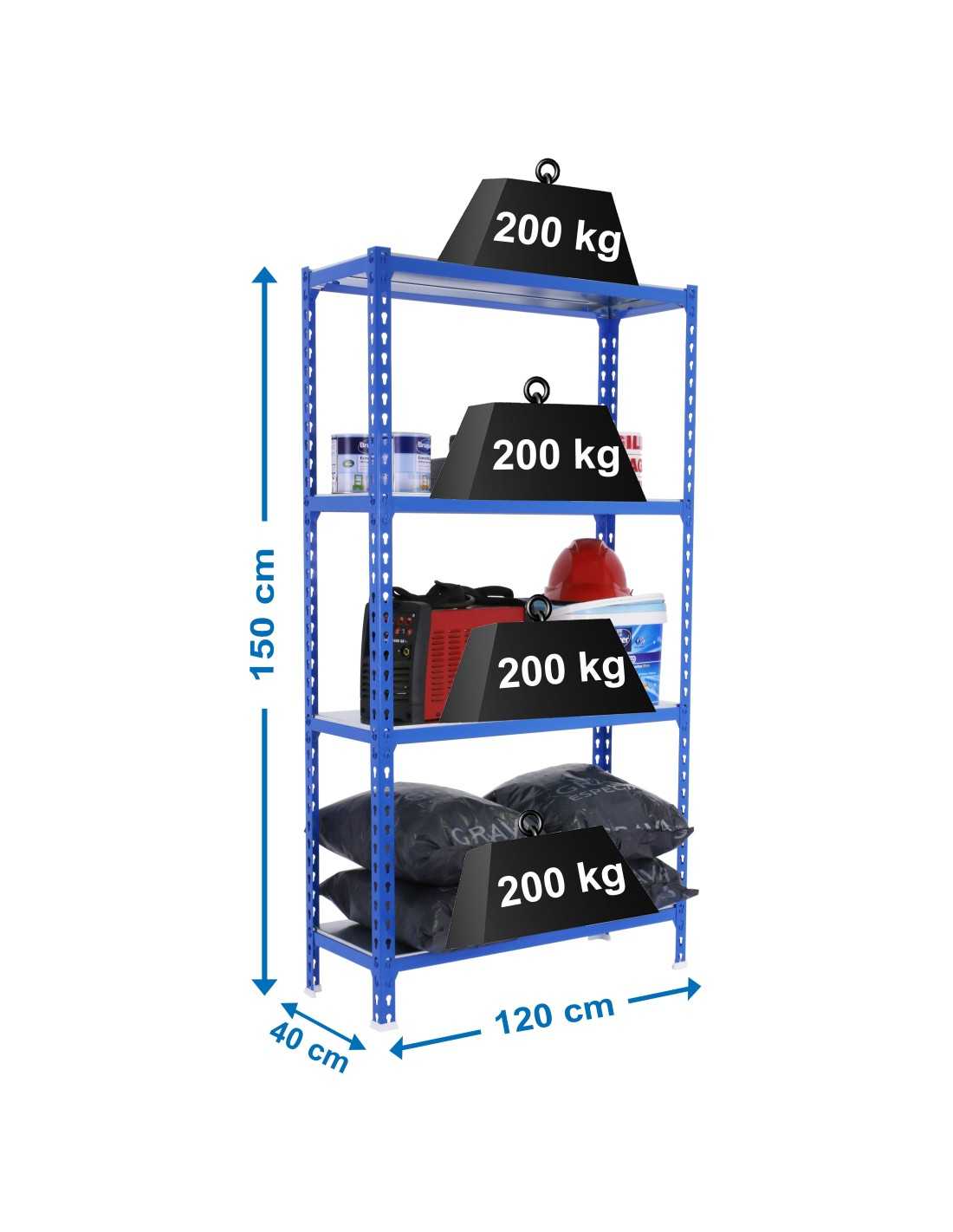 - Capacidad de carga por balda: 300 kg