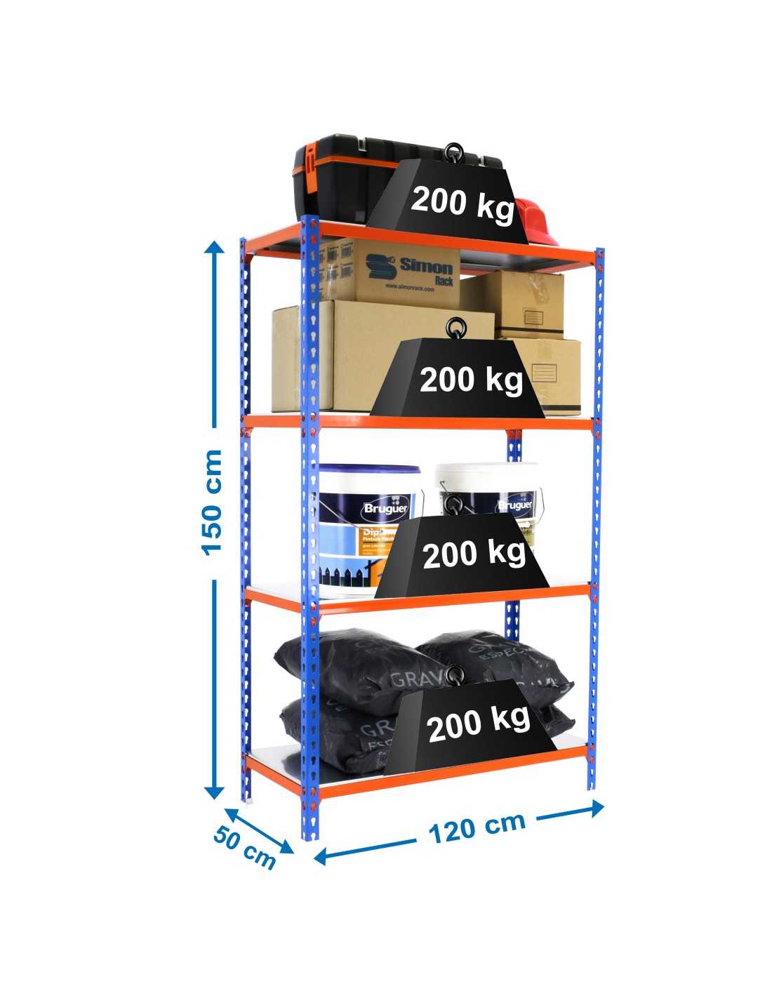 Compuesta por una estructura metálica reforzada con tratamiento antioxidante y baldas de chipboard, esta estantería proporciona estabilidad y durabilidad en todo tipo de condiciones.
