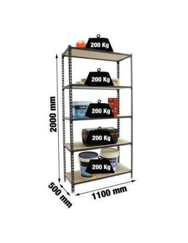 Incluye baldas de madera tipo chipboard con una capacidad de carga de hasta 300 kg por nivel, lo que garantiza un excelente rendimiento para herramientas, cajas, productos de almacén o uso general.
