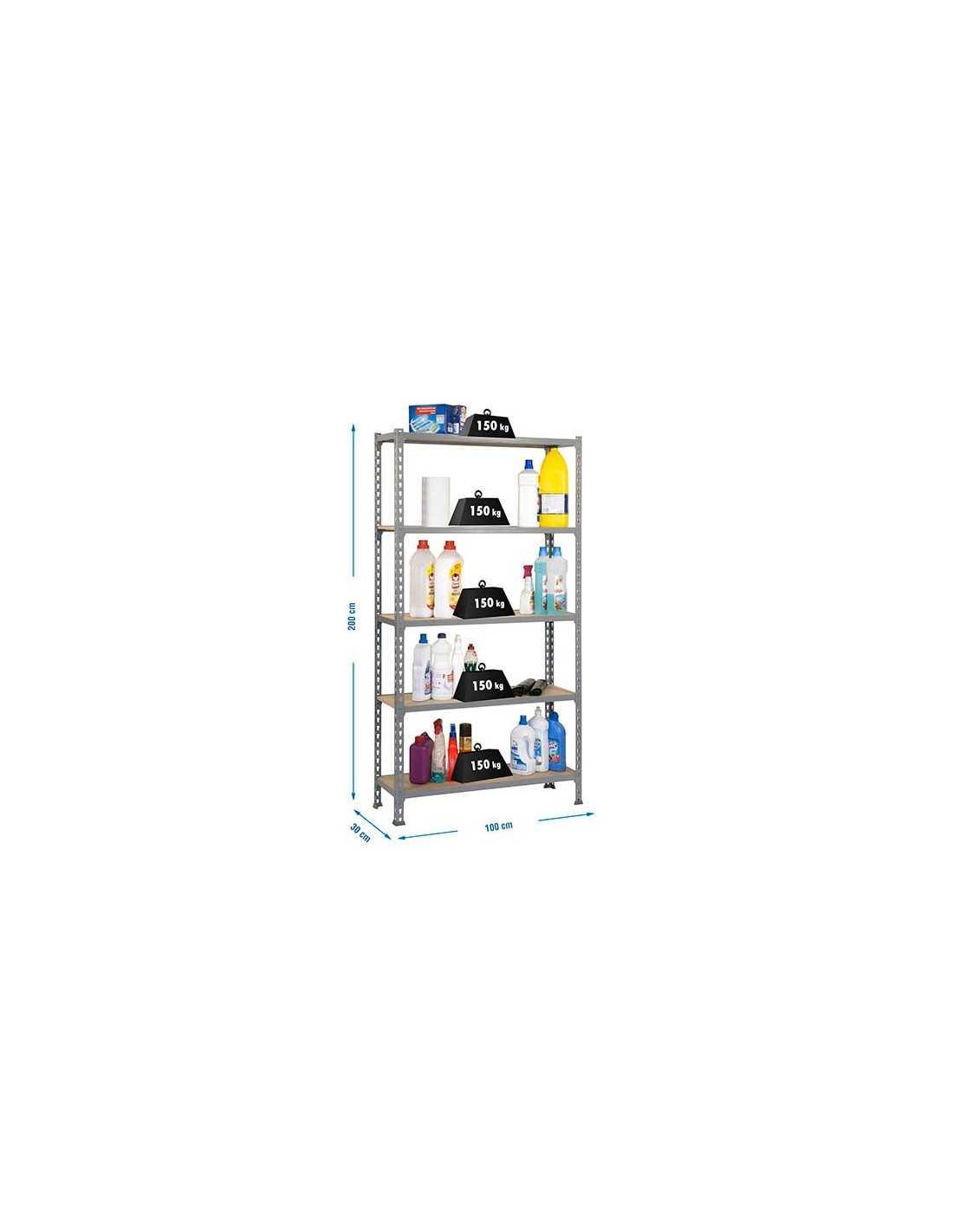 Compuesta por una estructura metálica reforzada con tratamiento antioxidante y baldas de chipboard, esta estantería proporciona estabilidad y durabilidad en todo tipo de condiciones.