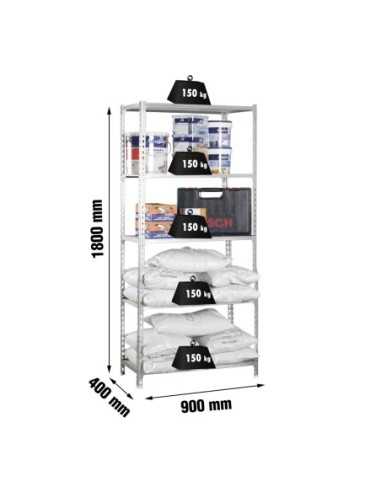 Compuesta por una estructura metálica reforzada con tratamiento antioxidante y baldas de chipboard, esta estantería proporciona estabilidad y durabilidad en todo tipo de condiciones.