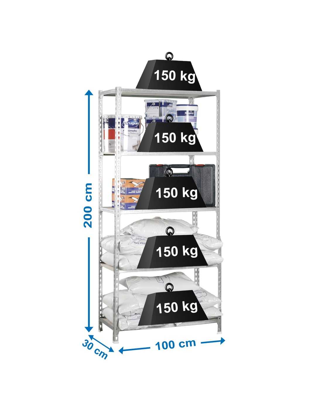 Compuesta por una estructura metálica reforzada con tratamiento antioxidante y baldas de chipboard, esta estantería proporciona estabilidad y durabilidad en todo tipo de condiciones.