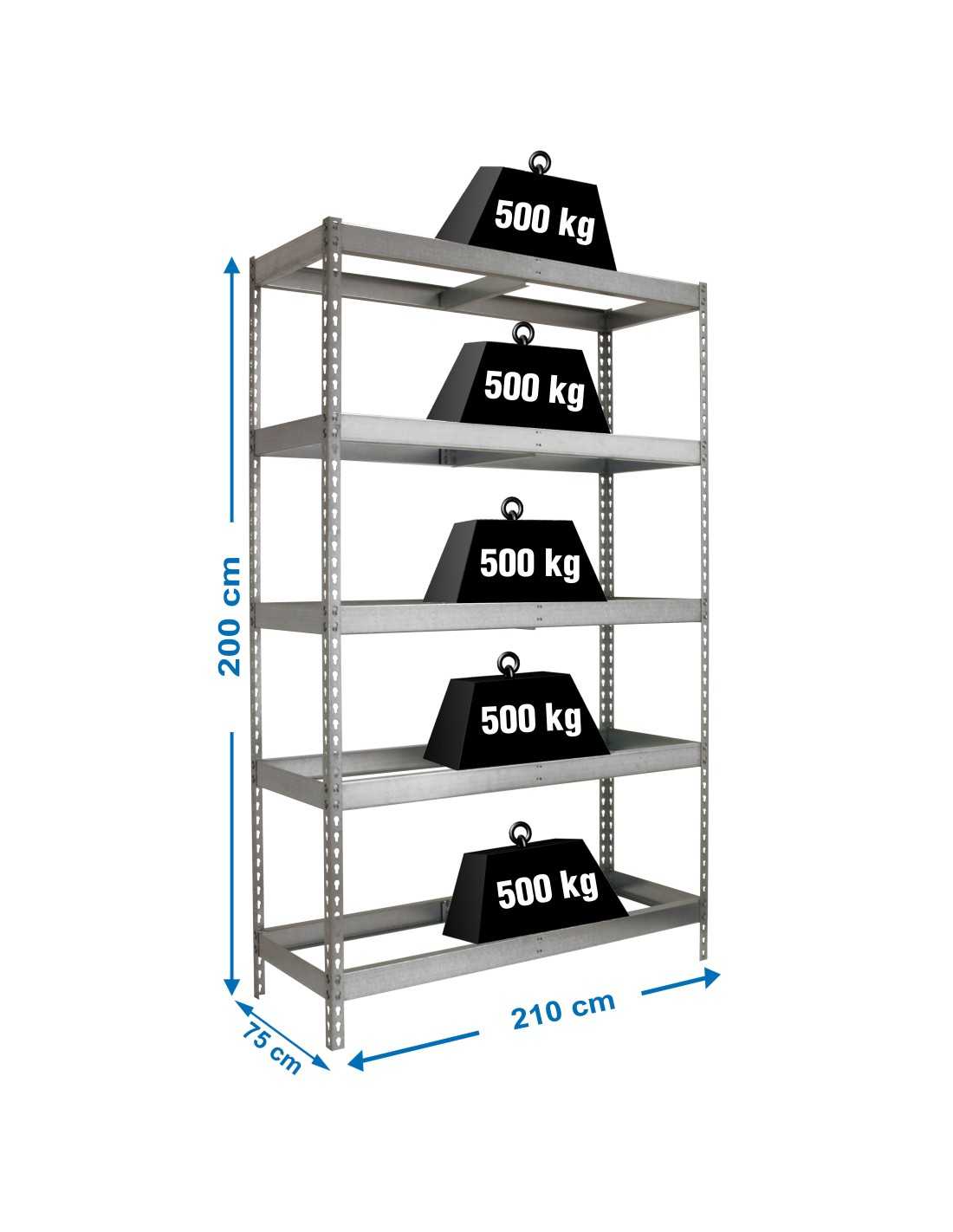 Estanteria metalica sin tornillos con 3 estantes. No contiene ni bandejas de aglomerado ni bandejas de metal. Estanteria que se monta de forma facil y comoda gracias a su sistema de click, sin tornillos simplemente con la ayuda de un martillo podras tener esta estanteria montada en aproximadamente 12 minutos. Tienes a tu disposicion un video detallado de montaje en Youtube. La capacidad de carga de cada uno de los estantes es de 500 kgs. Contiene dos refuerzos por estante. Contiene un recubrimiento plastico y acabado en epoxypoliester. Ademas es muy facil de limpiar. Manipulaci¢n del producto sin aristas de corte, sin riesgos de manipulacion. Es un producto fabricado en España. Medidas en uso del producto: 1975x2110x760 mm