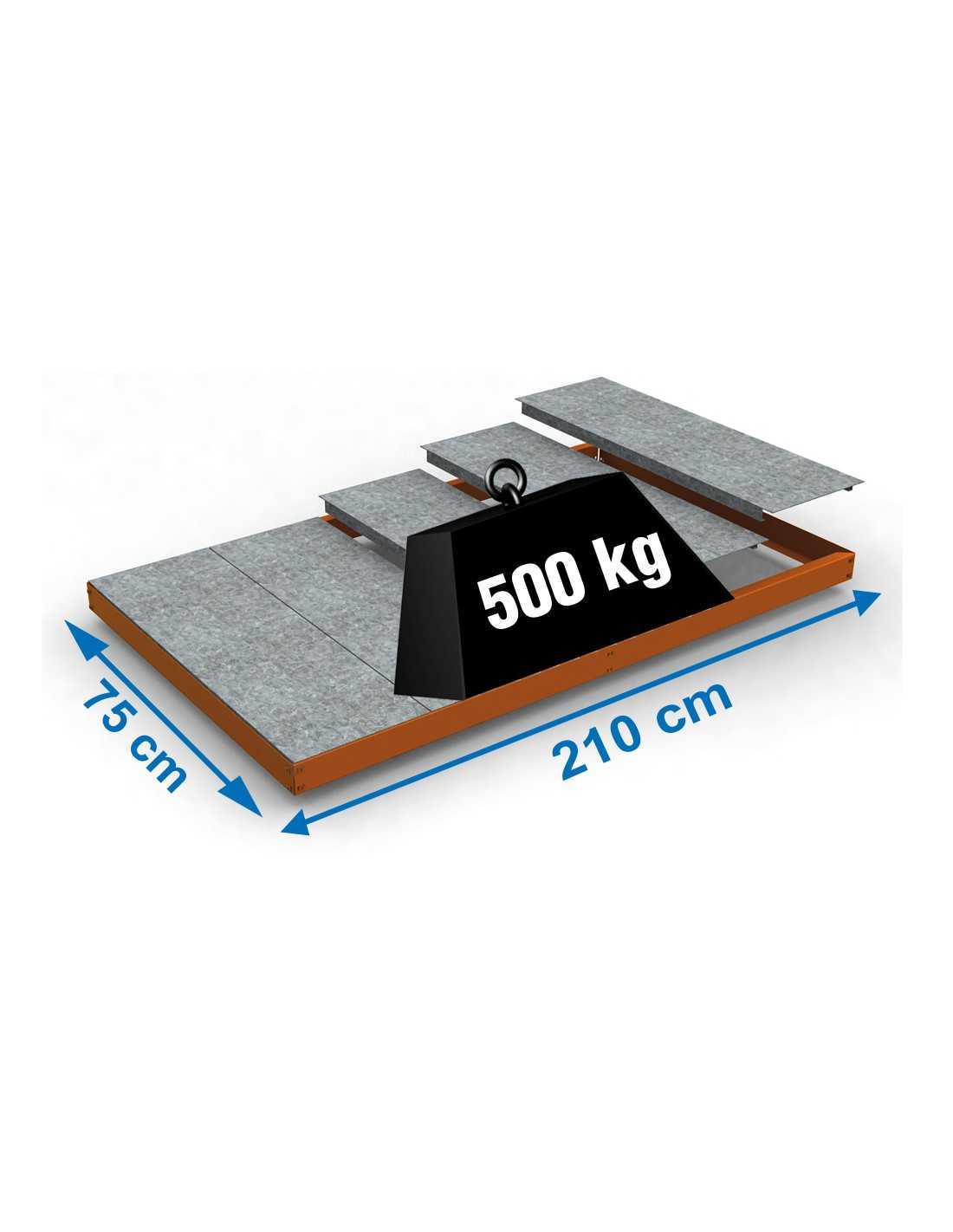 Estante adicional sin tornillos. Se monta de forma facil y comoda gracias a su sistema de click, sin tornillos simplemente con la ayuda de un martillo. La capacidad de carga es de 500 kgs. Incluye bandejas de metal. Incluye dos refuerzos. Medidas en uso del producto: 2110x760x70 mm