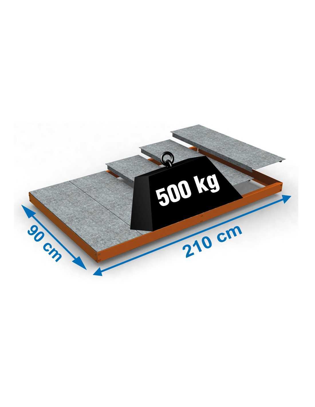 Estante adicional sin tornillos. Se monta de forma facil y comoda gracias a su sistema de click, sin tornillos simplemente con la ayuda de un martillo. La capacidad de carga es de 500 kgs. Incluye bandejas de metal. Incluye dos refuerzos. Medidas en uso del producto: 2110x910x70 mm