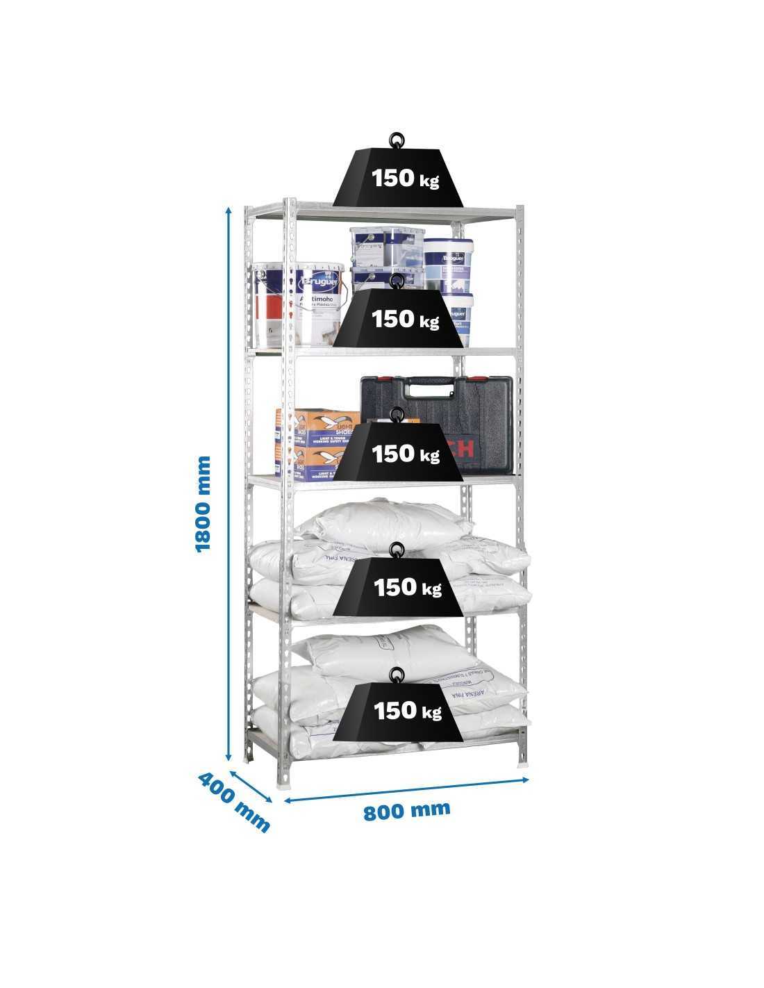 Palet 6 pack de estanterias metalicas madeclick mini 5/400 galva 1800x800x400. Con unas medidas de palet en mm de 1050x800x630. Fabricado simonrack