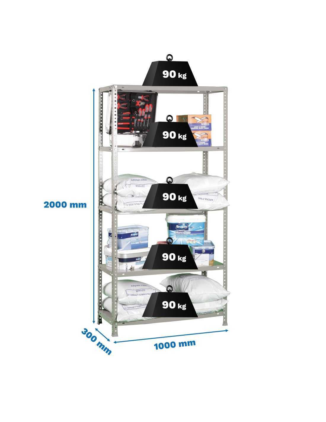 Fabricada en acero galvanizado o pintado según modelo, esta estantería es perfecta para carga media, permitiendo hasta 300 kg por balda. Gracias a su diseño de 5 o 6 niveles, permite almacenar desde materiales ligeros hasta elementos de gran peso.