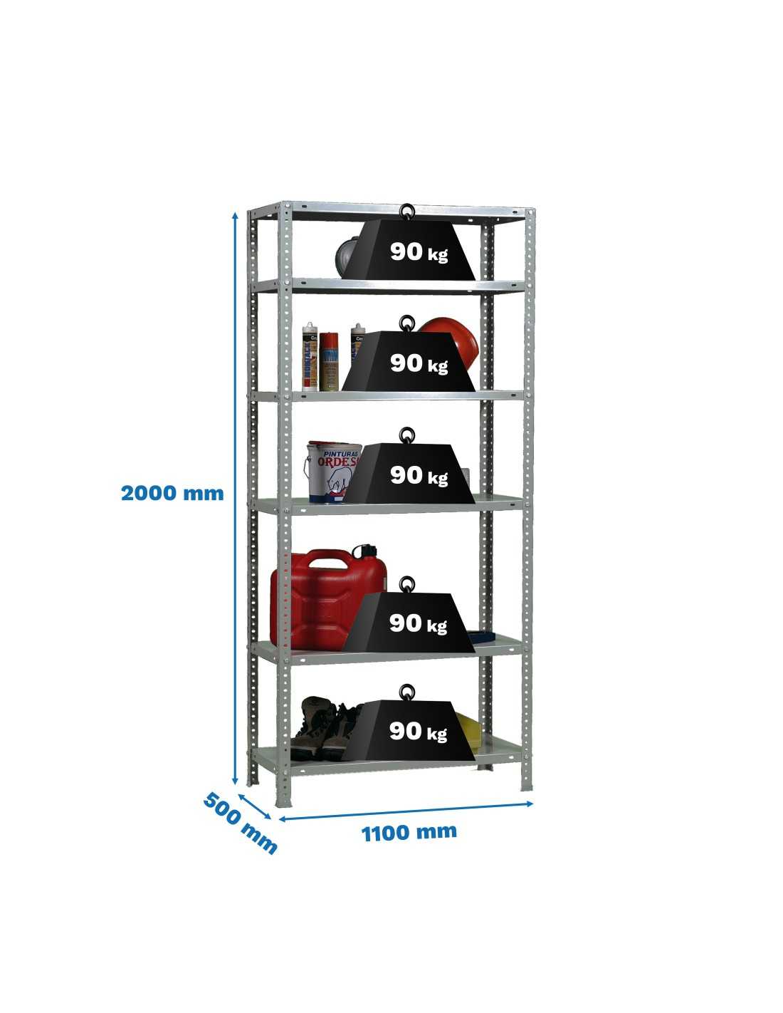 Fabricada en acero galvanizado o pintado según modelo, esta estantería es perfecta para carga media, permitiendo hasta 300 kg por balda. Gracias a su diseño de 5 o 6 niveles, permite almacenar desde materiales ligeros hasta elementos de gran peso.