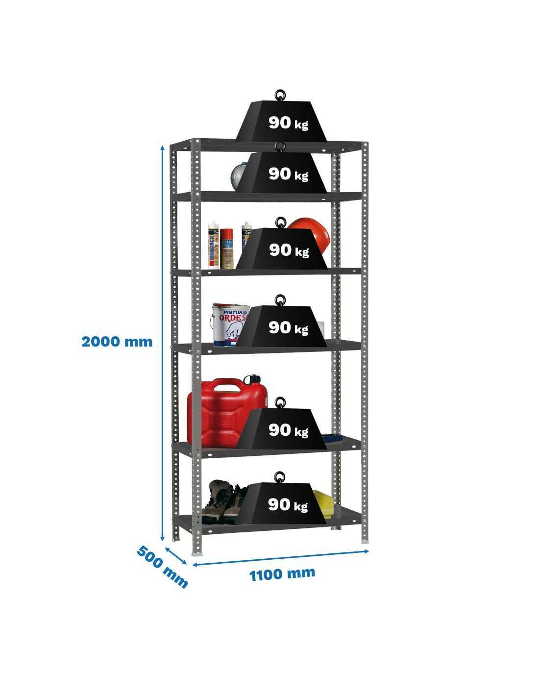 Fabricada en acero galvanizado o pintado según modelo, esta estantería es perfecta para carga media, permitiendo hasta 300 kg por balda. Gracias a su diseño de 5 o 6 niveles, permite almacenar desde materiales ligeros hasta elementos de gran peso.