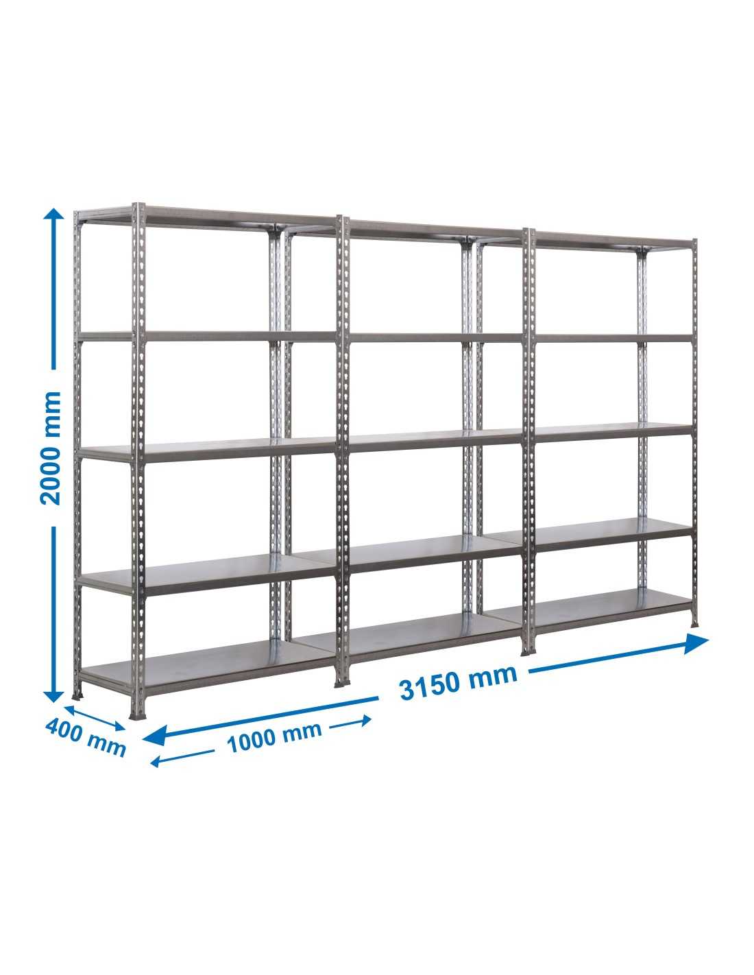 Pack 3 estanterías simonclick plus 5/400 galva/galva. Dimensiones de cada estantería (alto x ancho x fondo): 2000x1000x400 mm. Capacidad de carga por estante: 180 kg. Carga certificada a punto de flexión, no de rotura. Contiene bandejas metálicas. El único sistema de colocación de bandejas en 3 posiciones diferentes: horizontal o estándar, inclinada y contenedora (al revés). Producto fabricado en españa por simonrack. No contiene aristas de corte. Con recubrimiento epoxi poliester antirayaduras e ignífugo. No se tambalea y no necesita anclaje a la pared.