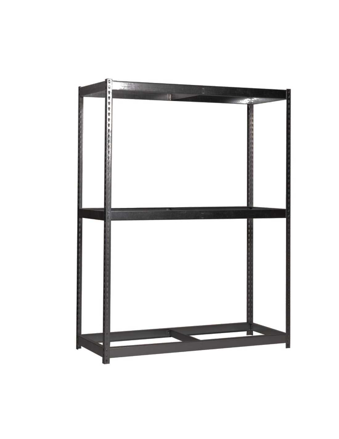 Estantería media carga sin tornillos 2000x1500x450 mm. De color ANTRACITA/antracita. La capacidad de carga es de 600 kgs. No Incluye bandejas metálicas ni aglomerados. No se tambalea y no tiene aristas de corte. Tiene 3 estantes.