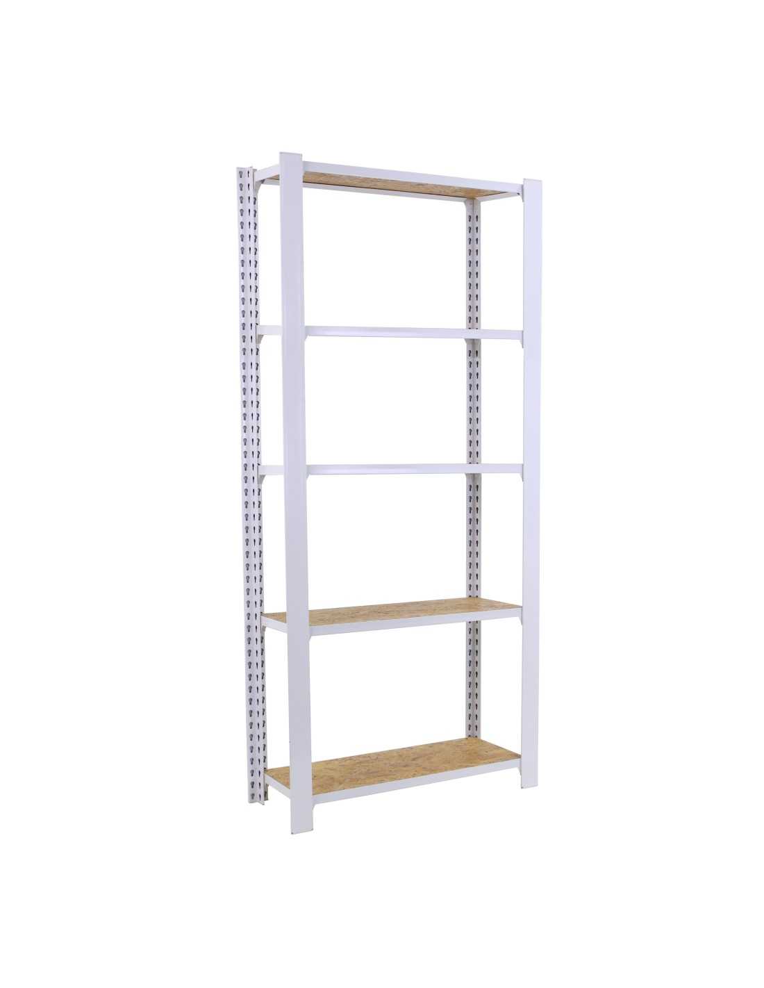 Estantería metálica sin tornillos de color blanco/osb con capacidad de carga por estante de 200 kg, certificación a punto de flexión. módulo inicial con bandejas de osb (tableros de virutas orientadas), tableros de alto rendimiento de grosor de 15 mm. Muy versátil enfocado a la decoración actual, donde su llamativo aspecto juega a su favor ya que por su apariencia industrial empasta completamente en ambientes modernos o vintage. El número de estantes es 5 y las medidas del producto (alto x ancho x fondo) son 2100x900x400 mm. Tiene perfil doble y en forma de T. Perfiles con recubrimiento epoxypoliester. No tiene aristas de corte, manipulación sin riesgo. No se tambalea y no necesita anclaje a la pared. Producto español, calidad europea, podrás encontrar las instrucciones de montaje en su interior.