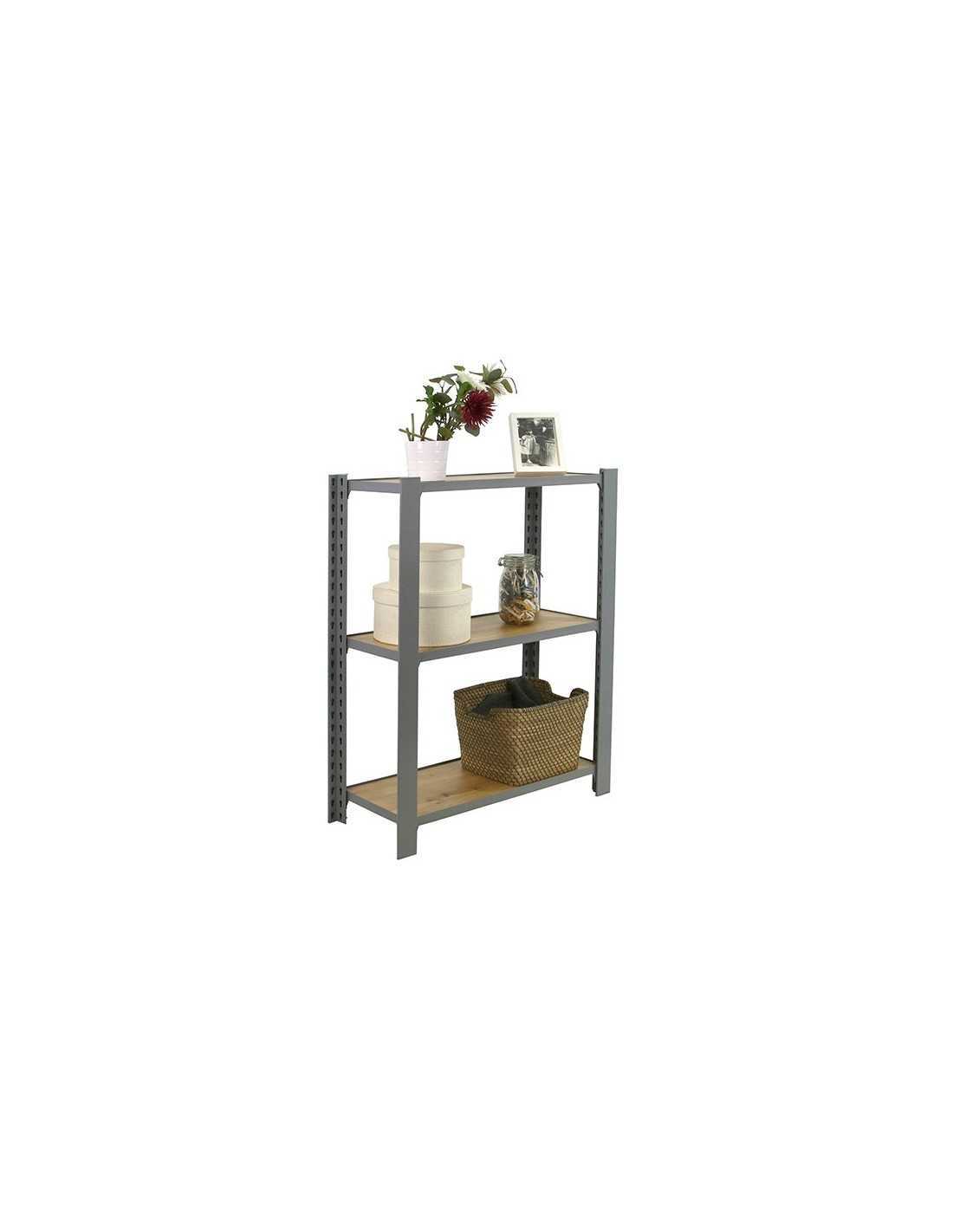 Estantería metálica sin tornillos de color gris/roble nodi con capacidad de carga por estante de 200 kg, carga certificada a punto de flexión, no de rotura. El número de estantes es 3 y las medidas (alto x ancho x fondo) son 1000x900x300 mm. Módulo Inicial con bandejas de madera. Tiene perfil doble y en forma de t. Producto español, calidad europea, podrás encontrar las instrucciones de montaje en su interior. No Se tambalea y no necesita anclaje a la pared. Estantería ideal para la oficina.