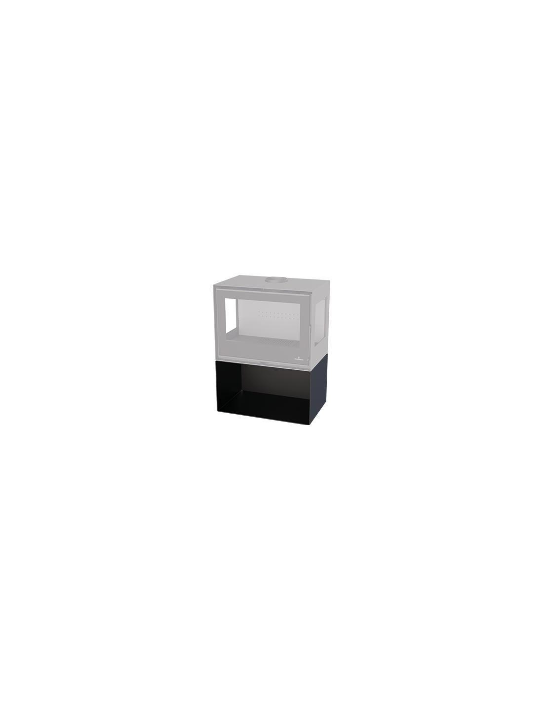 El diseño del CAIRO-90-3C BOX permite múltiples configuraciones para adaptarse a cualquier estilo de decoración: puede instalarse con el KIT-C-CAIRO-BOX para colgar (suspendido), con la Base con patas (B-90BOX) (tipo estufa exenta), o con la Base leñero (L-90BOX) (con almacenamiento de leña integrado), lo que le otorga una gran flexibilidad de diseño.