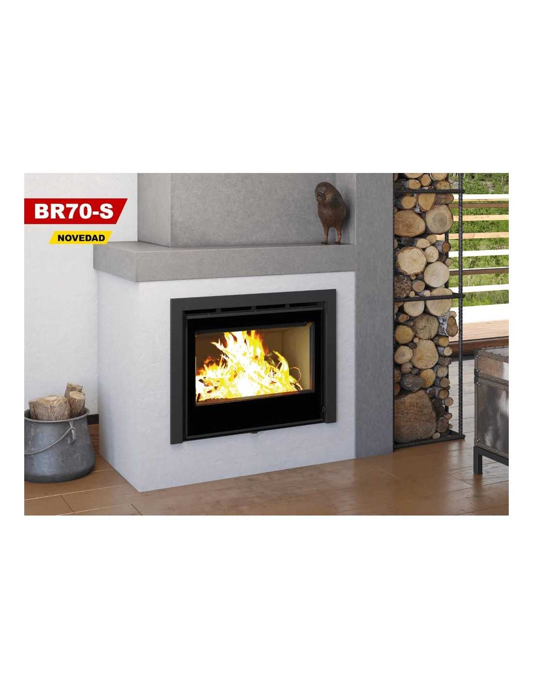 Recomendamos encarecidamente la Boreal BR70-S para propietarios de viviendas que tengan una chimenea de obra clásica que ya no calienta lo suficiente o que genera suciedad en el salón. Sus medidas compactas la hacen perfecta para rehabilitaciones sin complicaciones técnicas. Es la solución ideal para salones de tamaño medio (hasta 120 metros cuadrados aproximadamente) donde se busque un calor rápido y una estética minimalista. Gracias a su capacidad para quemar troncos de hasta 60 cm, es muy cómoda para el usuario, ya que no requiere un troceado excesivo de la leña. Si desea un acabado impecable, le sugerimos añadir el marco opcional de 3 o 4 lados para un ajuste estético perfecto contra la pared.