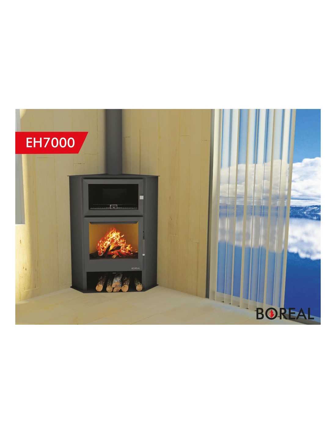 La Estufa de Leña Boreal EH7000 representa la cumbre de la eficiencia y el diseño funcional para la calefacción del hogar. Este equipo no es solo una fuente de calor, sino una estación térmica integral que combina una potente estufa de alta eficiencia con un horno superior de precisión. Su función principal es transformar la energía de la leña en un calor envolvente y constante, permitiendo cocinar alimentos de forma tradicional mientras se climatiza la estancia. Una de las mayores ventajas de la Boreal EH7000 es su sistema de triple combustión, una tecnología avanzada que garantiza que los gases se quemen casi por completo, lo que resulta en un rendimiento energético del 82% y una reducción drástica de las emisiones. El usuario final se beneficia de un consumo de leña optimizado y de la versatilidad de disponer de un horno con termómetro integrado, ideal para asados con el sabor auténtico de la leña. El diseño robusto en chapa de acero con acabados de alta calidad asegura que este equipo sea el corazón de su salón durante décadas, ofreciendo un confort térmico inigualable y una estética moderna que encaja en cualquier ambiente.