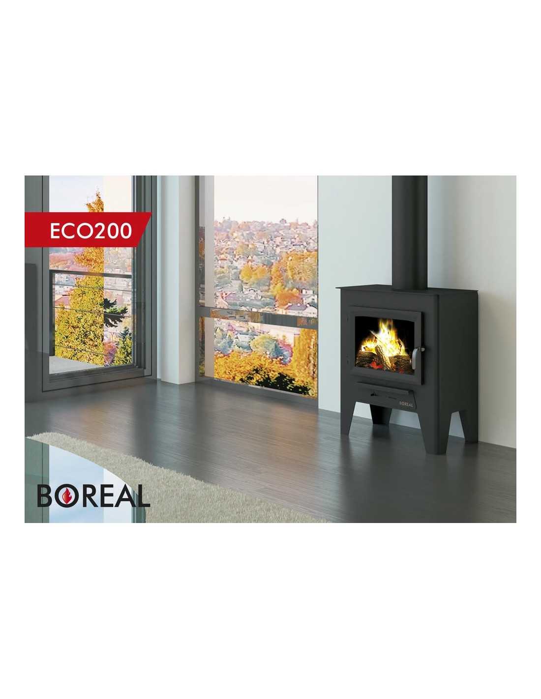 La Estufa de Leña Boreal ECO200 es una solución de calefacción compacta y eficiente, diseñada para quienes buscan la calidez tradicional del fuego con una tecnología moderna y respetuosa con el medio ambiente. Fabricada con un cuerpo robusto de chapa de acero de alta calidad y acabada con pintura anticalórica capaz de resistir temperaturas de hasta 650°C, esta estufa garantiza una larga vida útil y una resistencia excepcional al uso diario. Con una potencia máxima de 12 kW, la ECO200 es capaz de calentar volúmenes de hasta 225 m³, lo que la convierte en la opción ideal para salones de tamaño medio, casas de campo o estancias diáfanas. Su diseño cumple con la estricta normativa Eco Design, asegurando un aprovechamiento inteligente del combustible y una combustión mucho más limpia, lo que le otorga una calificación de eficiencia energética A+. El beneficio principal para el usuario final es la optimización del consumo de leña. Gracias a su excelente rendimiento del 82%, esta estufa genera más calor con menos cantidad de madera, reduciendo así los costes de calefacción. La combinación de una puerta de fundición con un cristal vitrocerámico resistente a 750°C no solo aporta seguridad, sino que crea un ambiente acogedor al permitir una visión clara y relajante de las brasas. Es un equipo equilibrado que aporta estilo, eficiencia y un calor confortable a cualquier hogar.
