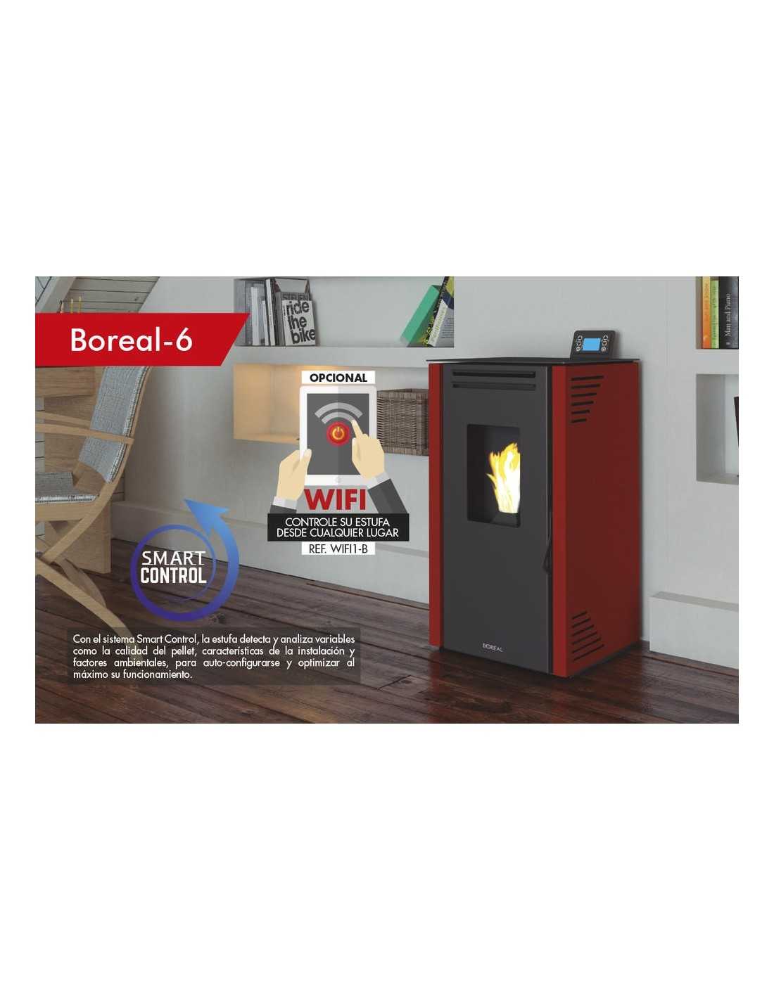 La Estufa de Pellet Boreal-6 representa la vanguardia en sistemas de calefacción doméstica, combinando un diseño elegante y compacto con una eficiencia energética superior de clase A++. Este equipo ha sido diseñado para transformar su hogar en un espacio acogedor y cálido, utilizando tecnología de última generación para garantizar un consumo mínimo de combustible y un respeto total por el medio ambiente, cumpliendo con la normativa Eco Design. Una de las mayores ventajas para el usuario final es su avanzado sistema Smart Control. Gracias a este, la estufa es capaz de detectar y analizar automáticamente variables críticas como la calidad del pellet utilizado, las particularidades de su instalación y los factores ambientales de su estancia. Esto permite que la estufa se auto-configure en tiempo real para optimizar su rendimiento, asegurando que usted siempre obtenga el máximo calor con el menor gasto posible. Además, su estética moderna está disponible en tres acabados premium: Negro, Burdeos y Marfil, lo que permite que se integre perfectamente en cualquier estilo de decoración interior. Es la solución definitiva para quienes buscan confort térmico, ahorro económico y sostenibilidad sin renunciar a un manejo intuitivo y sencillo.