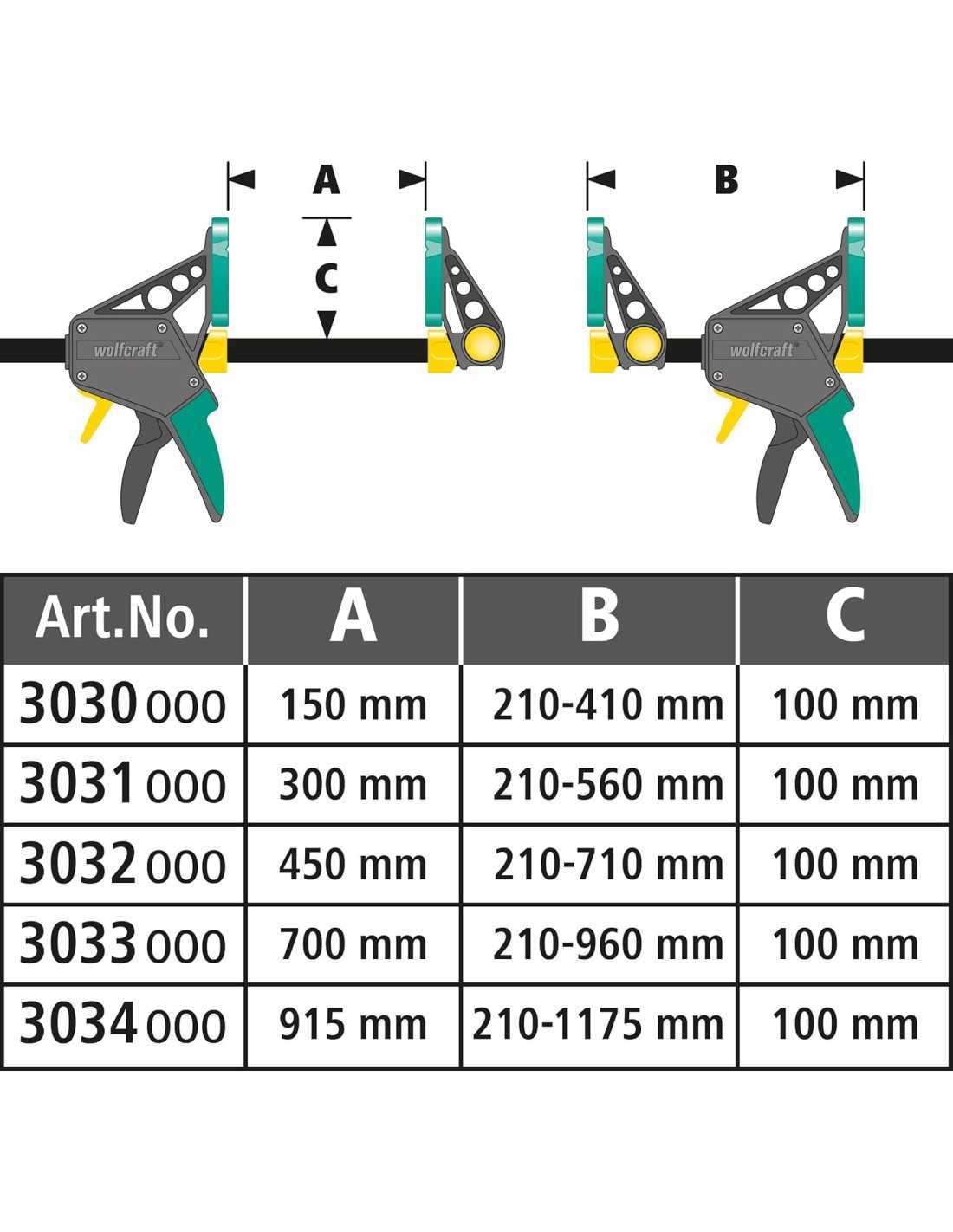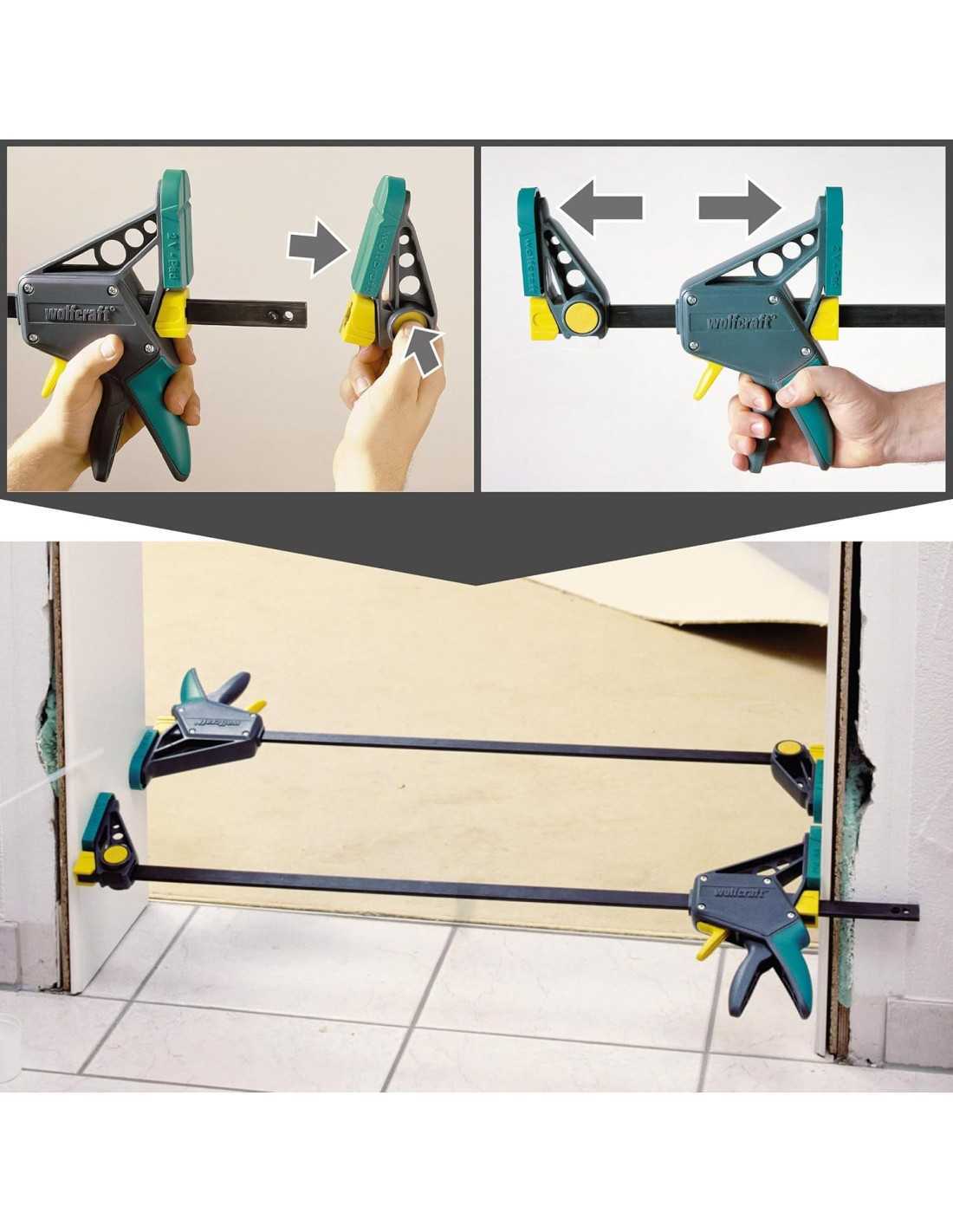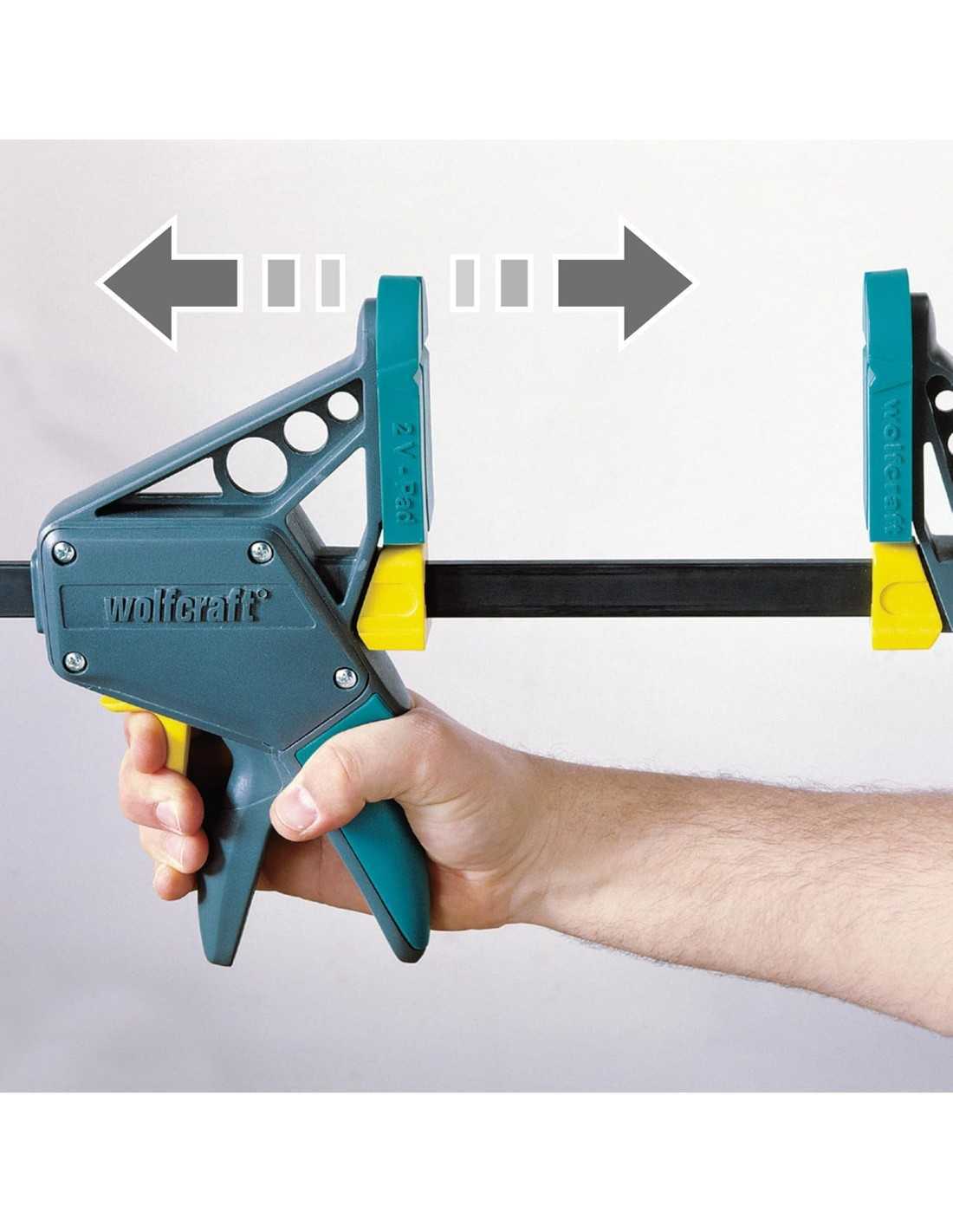 El Sargento Monomanual PRO L de Wolfcraft es una herramienta de alta calidad diseñada para ofrecer un rendimiento excepcional en proyectos de madera y muebles. Este sargento destaca por su capacidad para realizar sujeciones y aperturas graduales con una sola mano, gracias a su innovador sistema de bombeo. Con una fuerza de sujeción de hasta 120 kg, este sargento es ideal para fijar y asegurar piezas de trabajo de manera precisa y sin dañarlas.