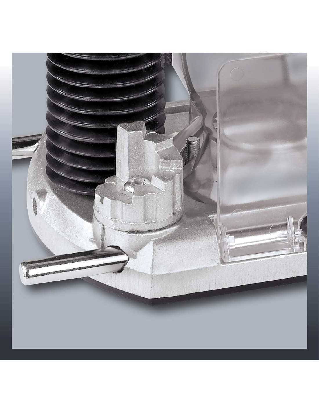 El control electrónico de velocidad te permite adaptar la velocidad de rotación al tipo de material y al trabajo que estés realizando, garantizando resultados óptimos. El tope de revólver en varias posiciones y la profundidad regulable sin escalones con ajuste de precisión te permiten realizar cortes precisos y repetitivos. Además, el bloqueo del husillo facilita el cambio de fresas, ahorrando tiempo y esfuerzo.