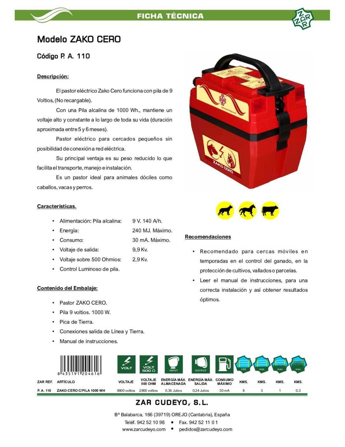 En Ferretería CAHERSA, nos enorgullece ofrecer productos de calidad respaldados por nuestra garantía. Al comprar el Pastor Eléctrico Zako Zero PA-100 en nuestra tienda, disfrutarás de un envío rápido y gratuito, así como de una atención al cliente excepcional. Haz tu compra con confianza y prepárate para disfrutar de la naturaleza con el mejor equipo. Visita nuestra página para más información: [[www.ferreteriacahersa.com](https://www.ferreteriacahersa.com)].