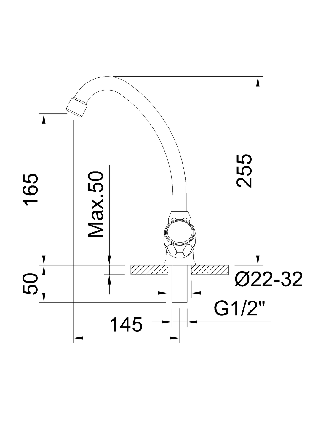 Grifo de Cocina CLEVER simple repisa G90 195mm con caño conformado With2 Guayama Cromado