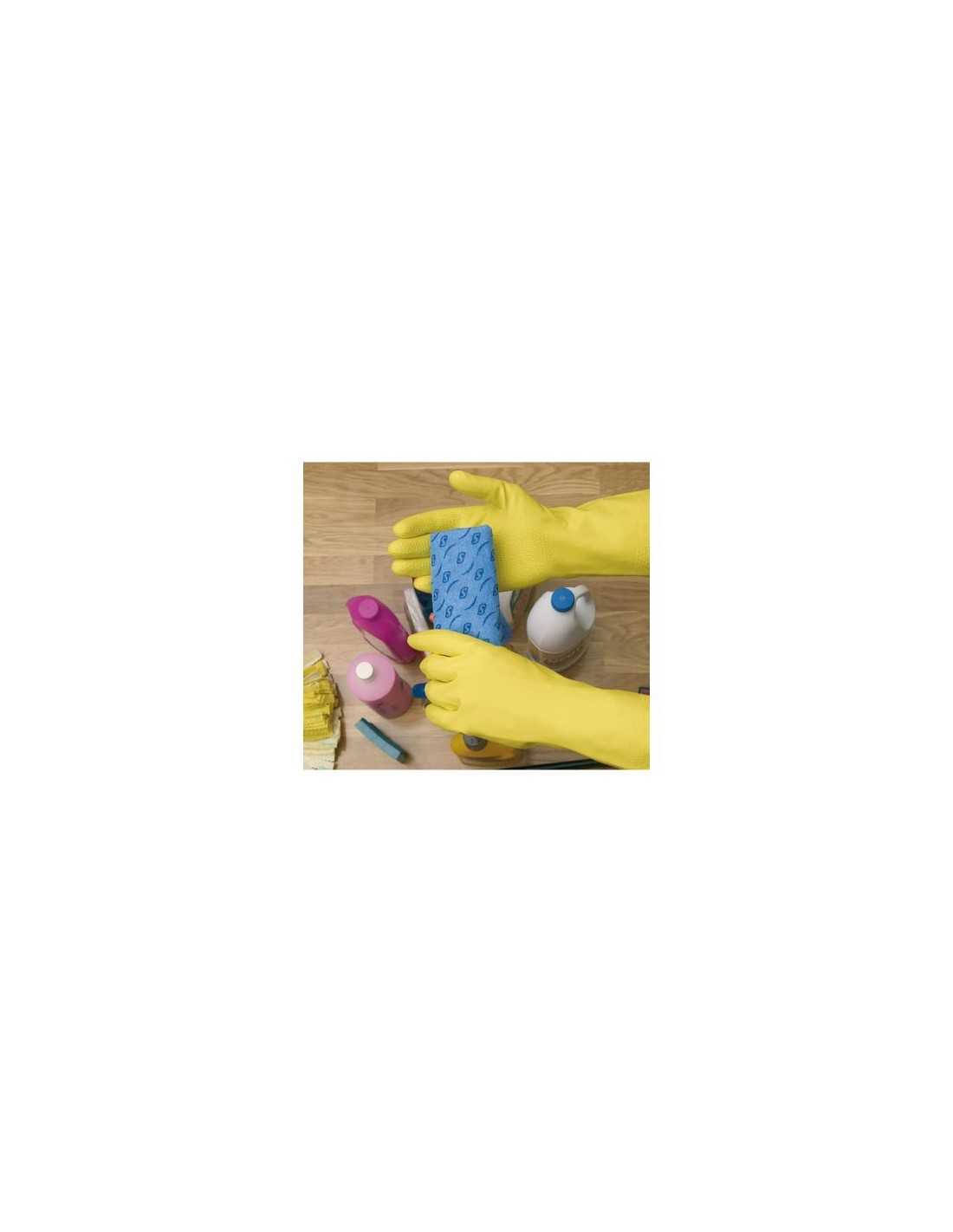 Protección eficaz contra detergentes, lejías y productos de limpieza habituales. El flocado de algodón mantiene las manos secas y confortables durante horas de trabajo, mientras que la flexibilidad del látex natural facilita el acceso a zonas difíciles sin perder destreza.