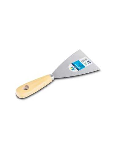 La espátula Popular es una herramienta versátil y resistente, ideal para aficionados al bricolaje que buscan una solución fiable para sus proyectos. Fabricada con una hoja de acero al carbono de 1,1 mm de grosor y un mango de madera barnizada, esta espátula ofrece una gran durabilidad y un manejo cómodo.