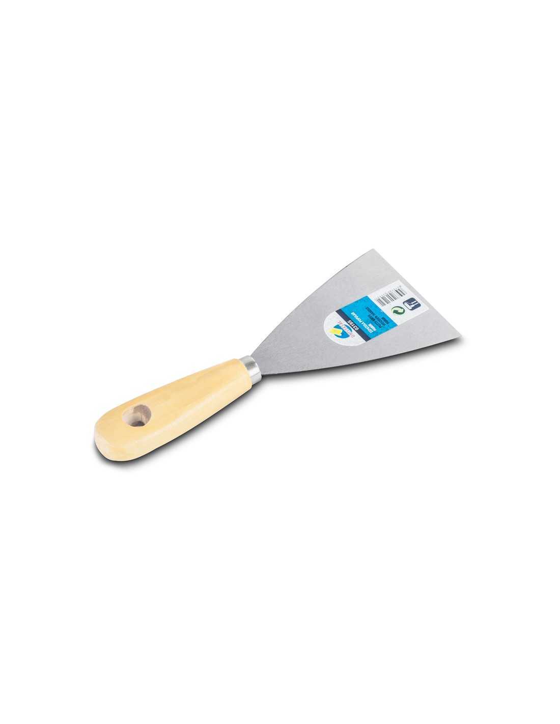 La espátula Popular es una herramienta versátil y resistente, ideal para aficionados al bricolaje que buscan una solución fiable para sus proyectos. Fabricada con una hoja de acero al carbono de 1,1 mm de grosor y un mango de madera barnizada, esta espátula ofrece una gran durabilidad y un manejo cómodo.