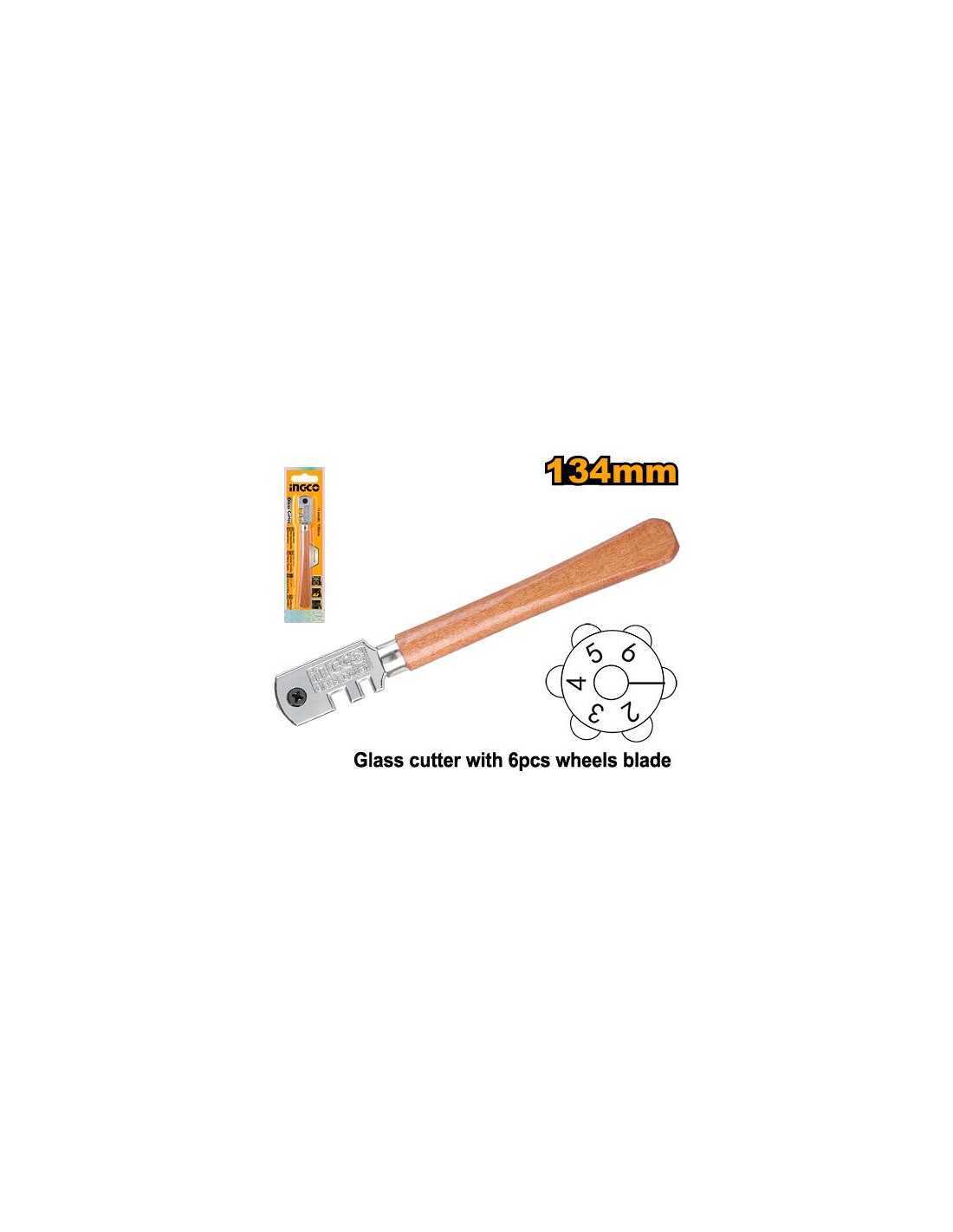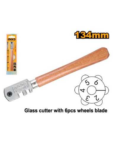 El cortador de cristales INGCO HGCT02 es una herramienta manual especialmente diseñada para realizar cortes precisos en cristales. Con una longitud de 130 mm y una ruleta de 6 cuchillas, este cortador permite cortes precisos con una longitud total de corte de 3000 x 6. Su mango de madera proporciona un agarre cómodo y seguro durante el uso.