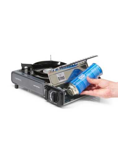 Descubre el versátil e innovador hornillo Campingaz Camp’Bistro 3, diseñado con dos sistemas de seguridad integrados, tapa de cartucho de acero inoxidable y soporte de cacerola mejorado para brindar estabilidad y seguridad. Este potente hornillo de 2200 vatios cuenta con ignición piezoeléctrica, compartimento para agua que facilita la limpieza, y un práctico estuche de transporte.