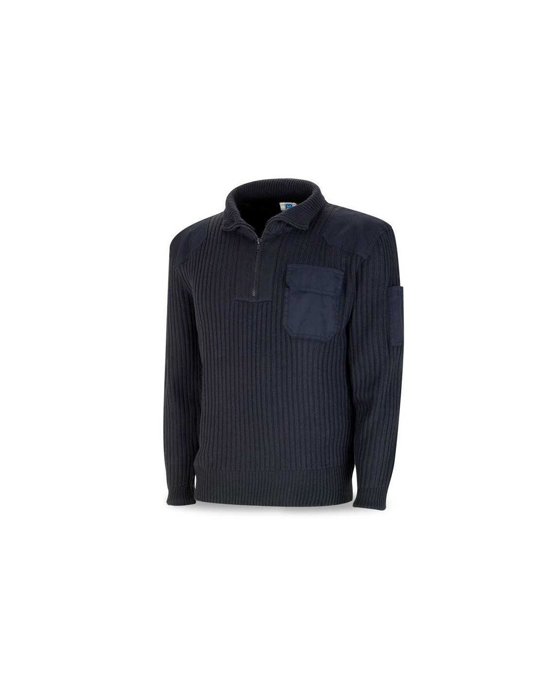 Jersey de punto acanalado MARCA PL con Cremalleta Azul Marino T-XL