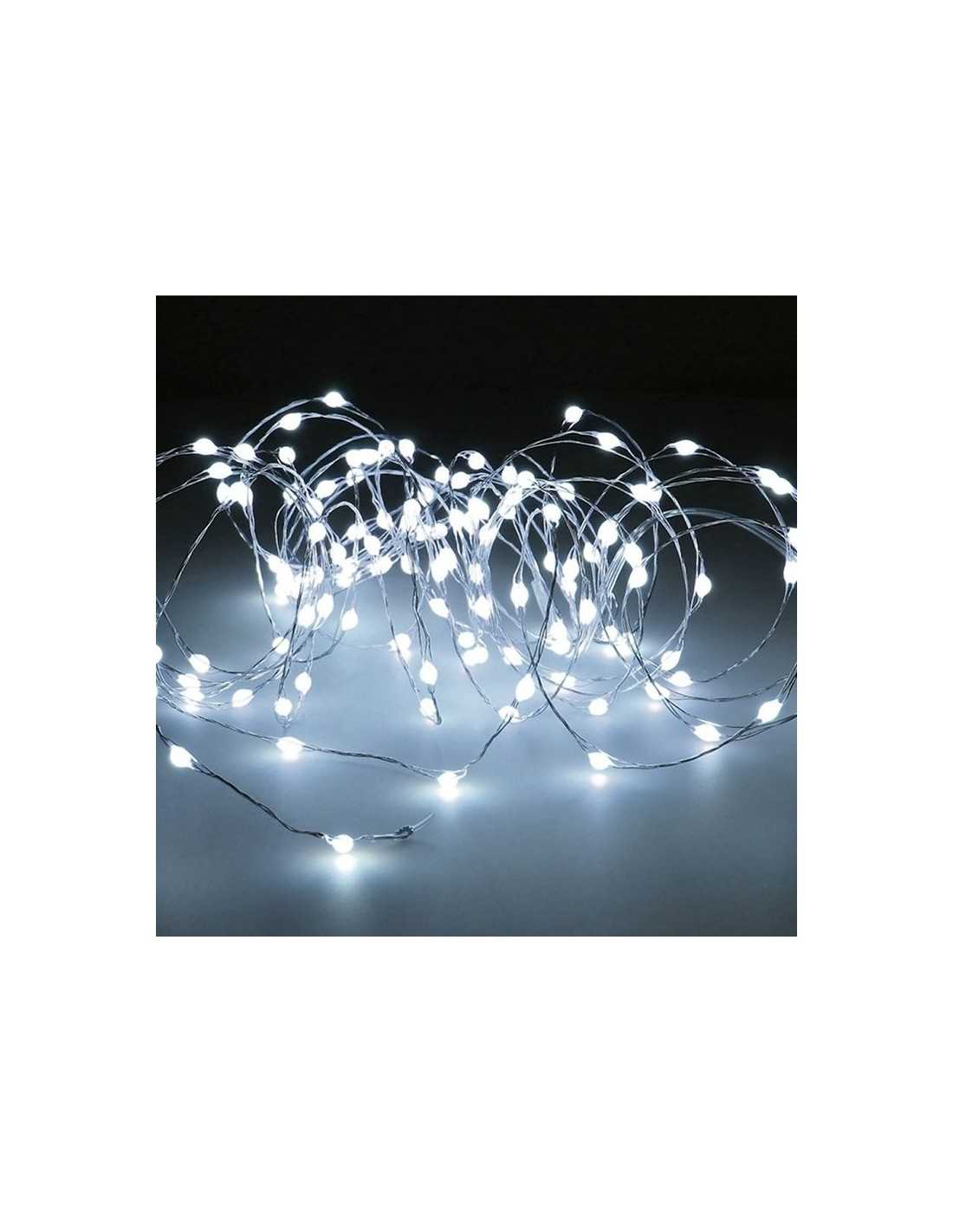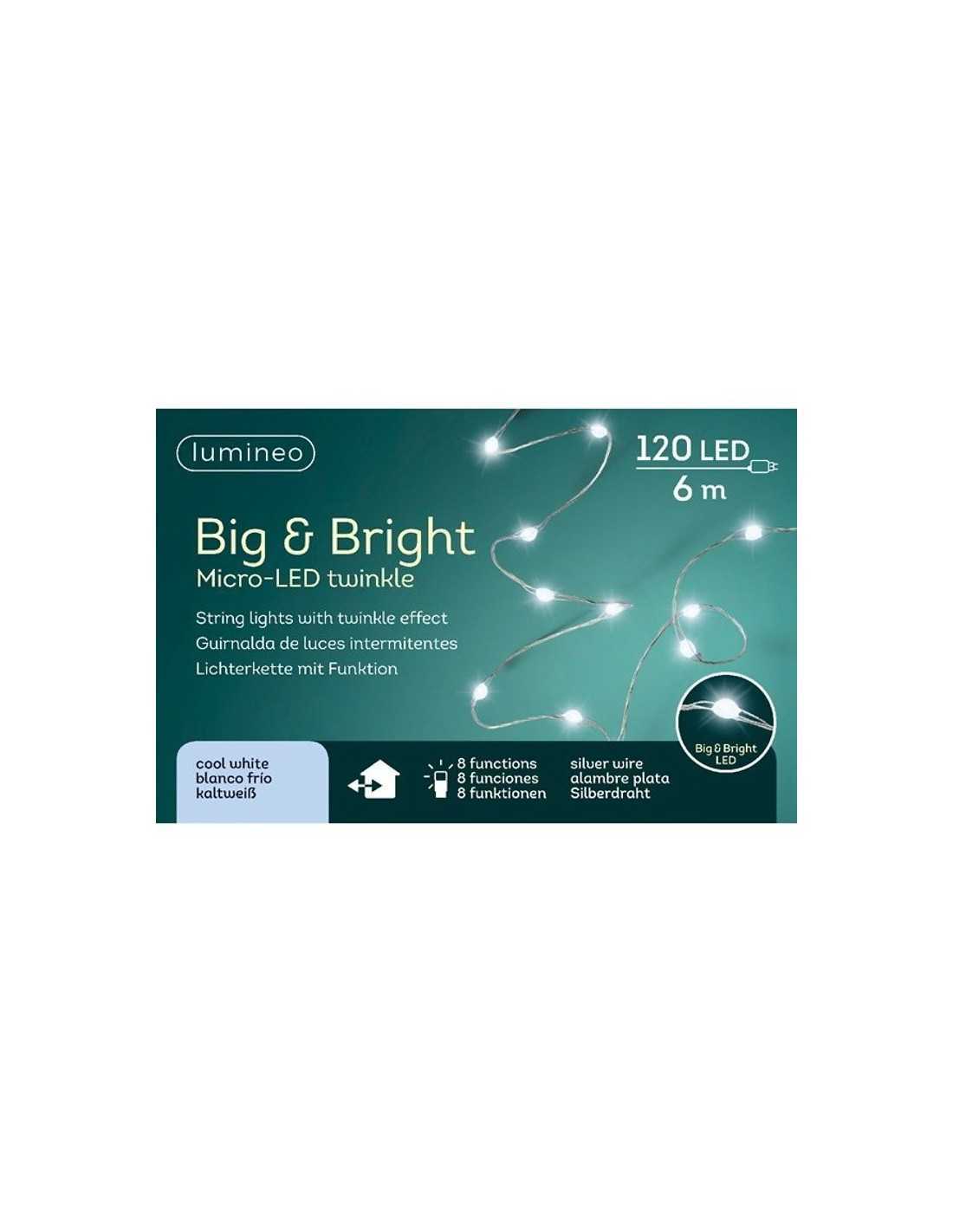Diseñada para destacar, esta cadena de luces LED de 6 metros viene equipada con 120 micro LED en color blanco frío, distribuidos de forma uniforme sobre un fino cable de color plata que se integra discretamente en cualquier decoración.