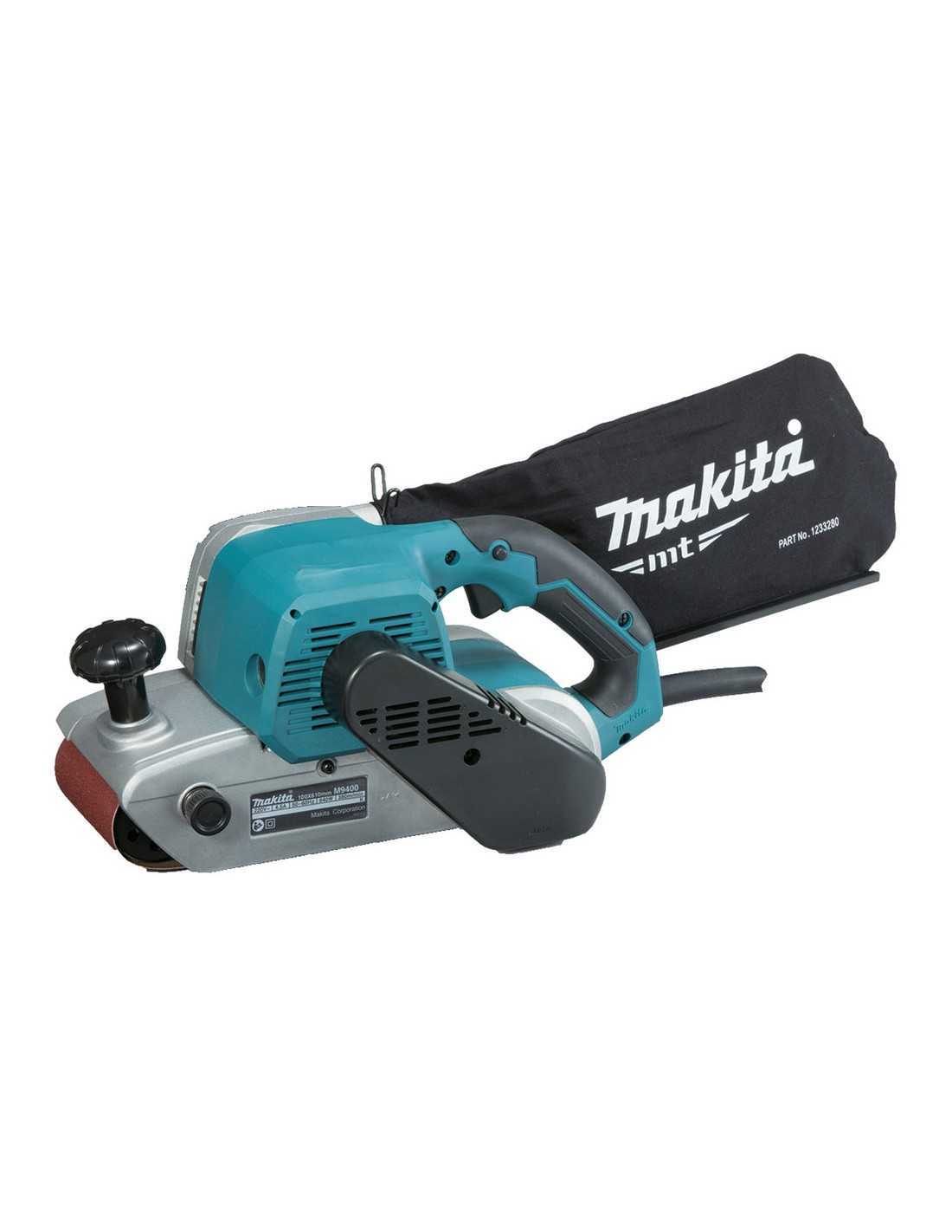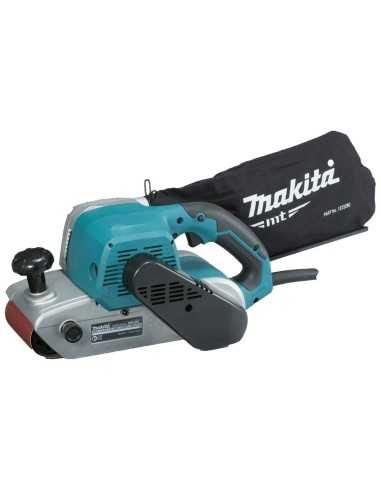 La Makita M9400B es una lijadora de banda potente para eliminar rápidamente el material. Cuenta con una bolsa de polvo para un entorno de trabajo más limpio y un gran nivel para cambiar rápidamente y fácilmente las bandas de lijado.