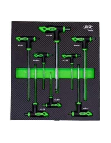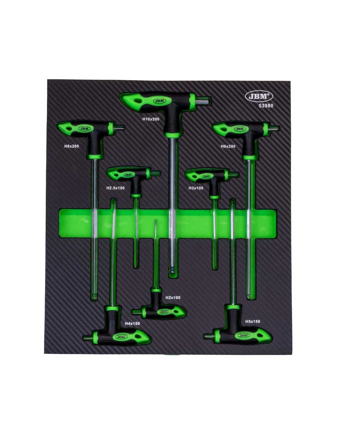 Este juego de 8 piezas ha sido configurado para cubrir las necesidades más comunes en el taller, detallando a continuación sus medidas técnicas y materiales: