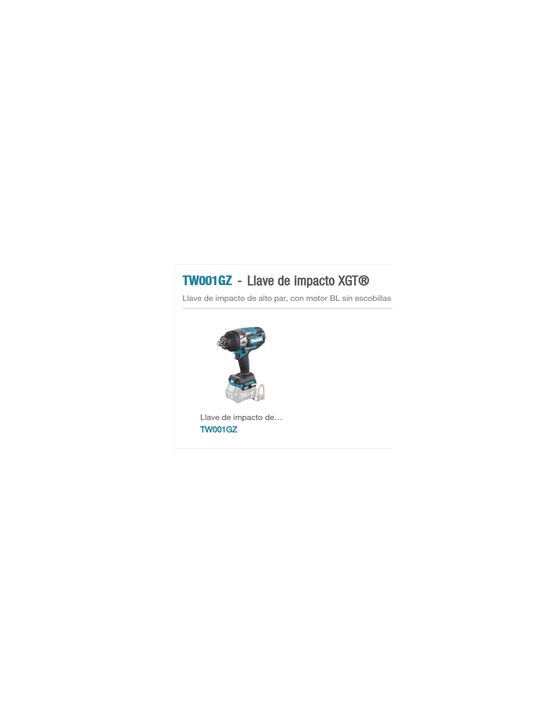 La llave de impacto inalámbrica Makita TW007GZ es una herramienta potente y precisa, diseñada para ofrecer un rendimiento excepcional en diversas aplicaciones. Con un par de apriete de hasta 760 N·m (560 ft.lbs.) y una velocidad sin carga de hasta 2,300 min?¹, esta llave de impacto es capaz de realizar trabajos de apriete con precisión y facilidad.