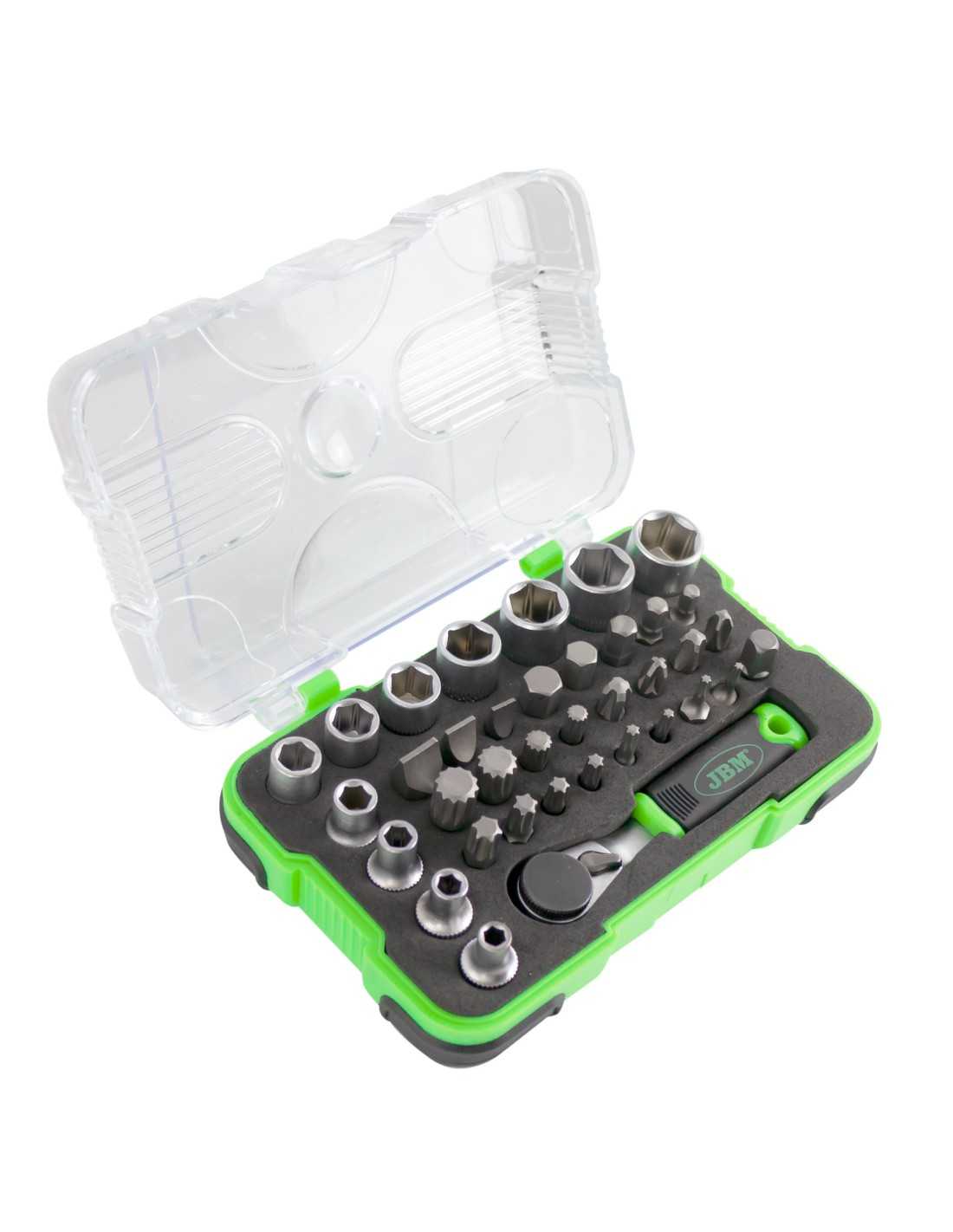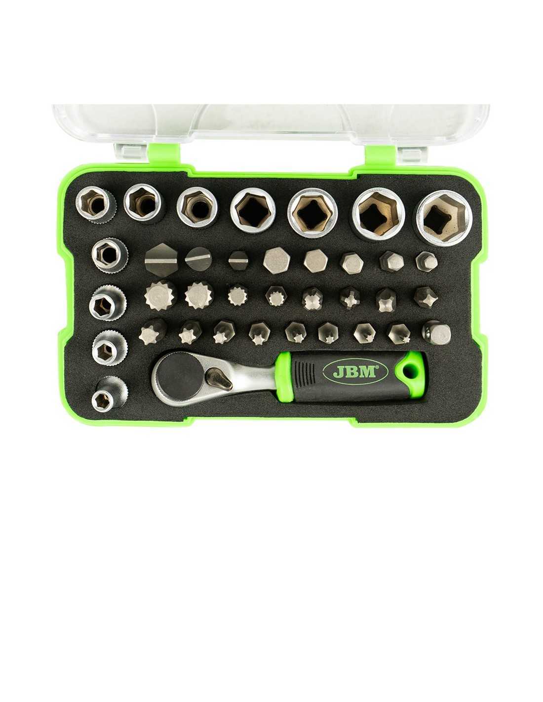 Estuche de llaves JBM de 38 PIEZAS con Carraca Mini 1/4" 53156