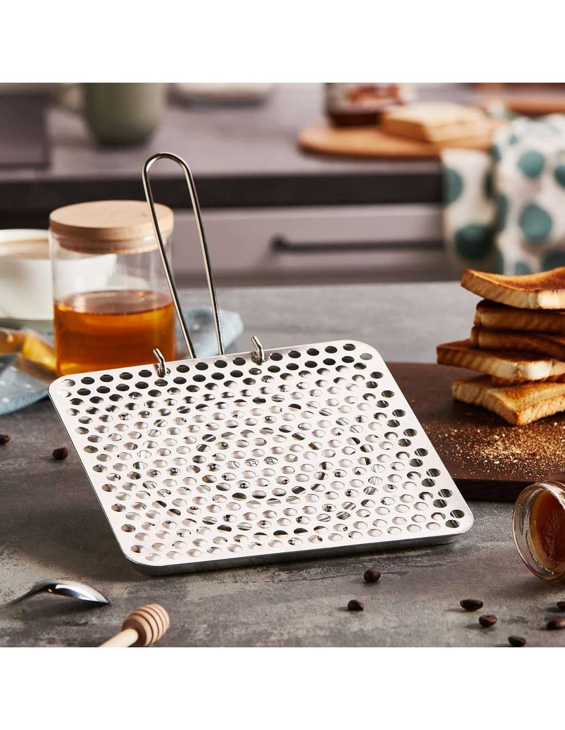 - Dimensiones de 20 x 20 cm: Ofrece una superficie de tostado generosa, ideal para colocar varias rebanadas simultáneamente o piezas de pan de molde de gran tamaño.